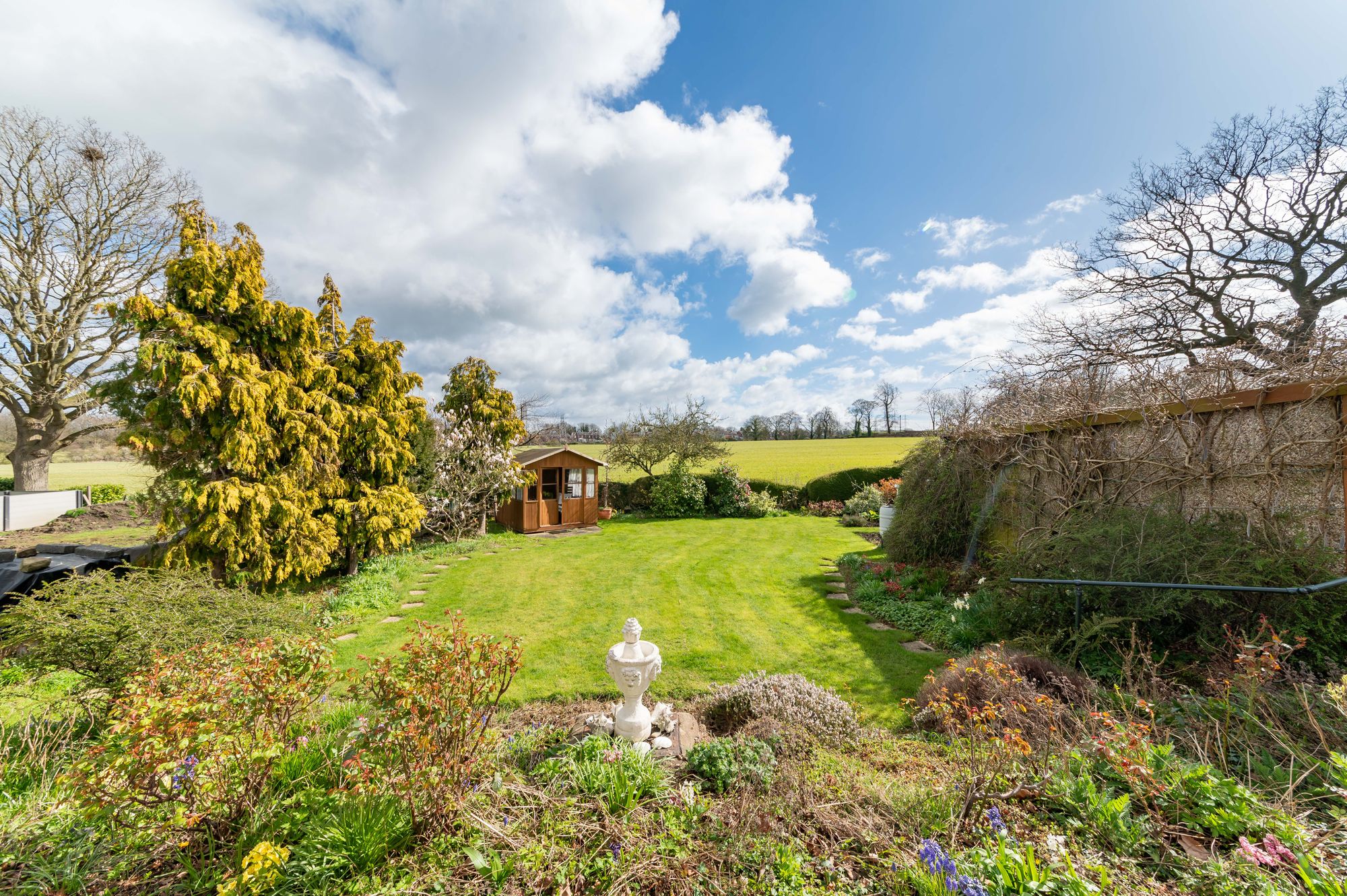 Bedroom one is a light and airy double bedroom which has ample space for free standing furniture. There is decorative coving to the ceiling, a central ceiling light point, a radiator and a bank of double glazed windows to the rear elevation which take full advantage of pleasant views onto the gardens and of neighbouring fields. A sliding pocket door then allows access to the en-suite bathroom.