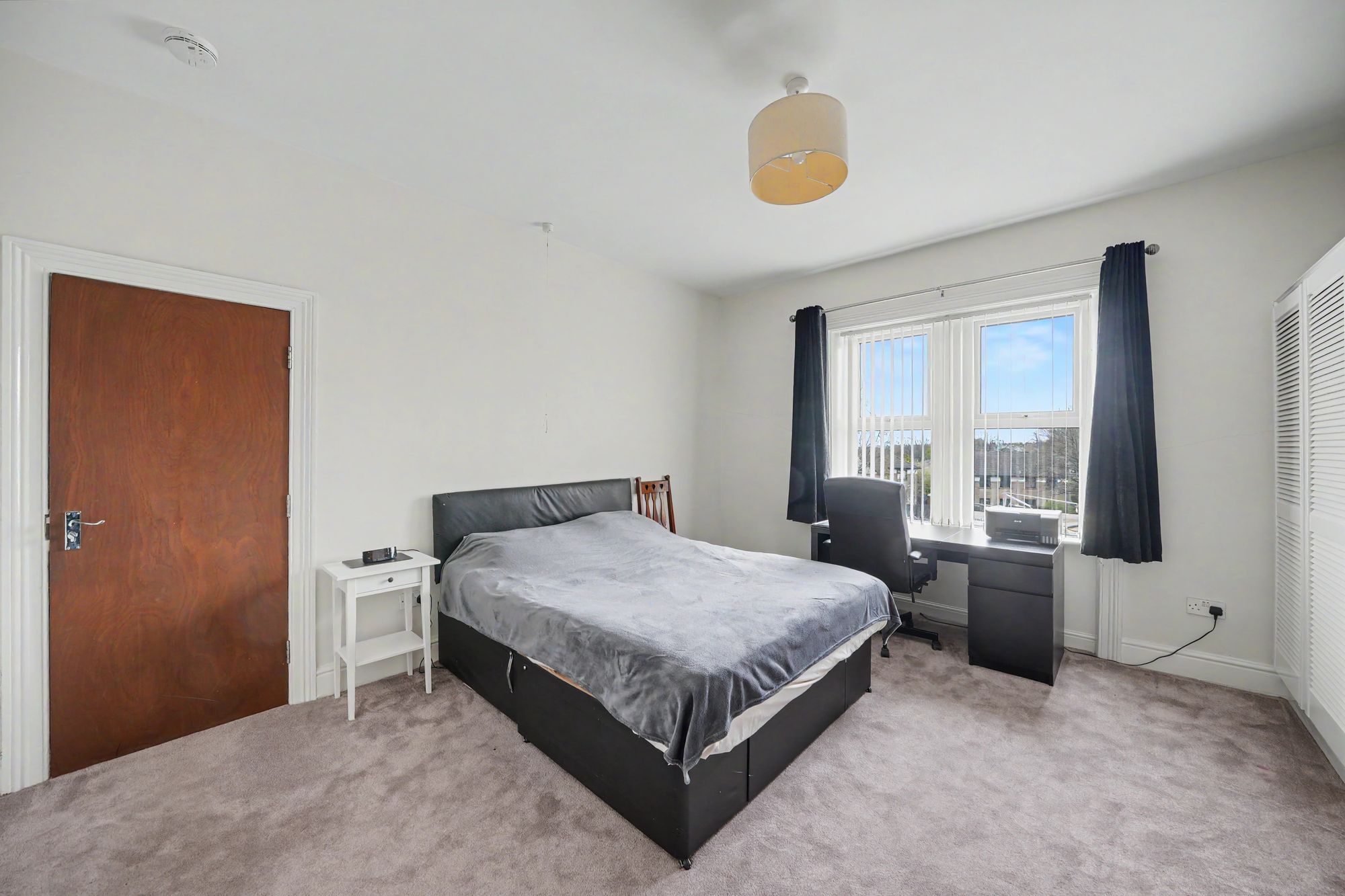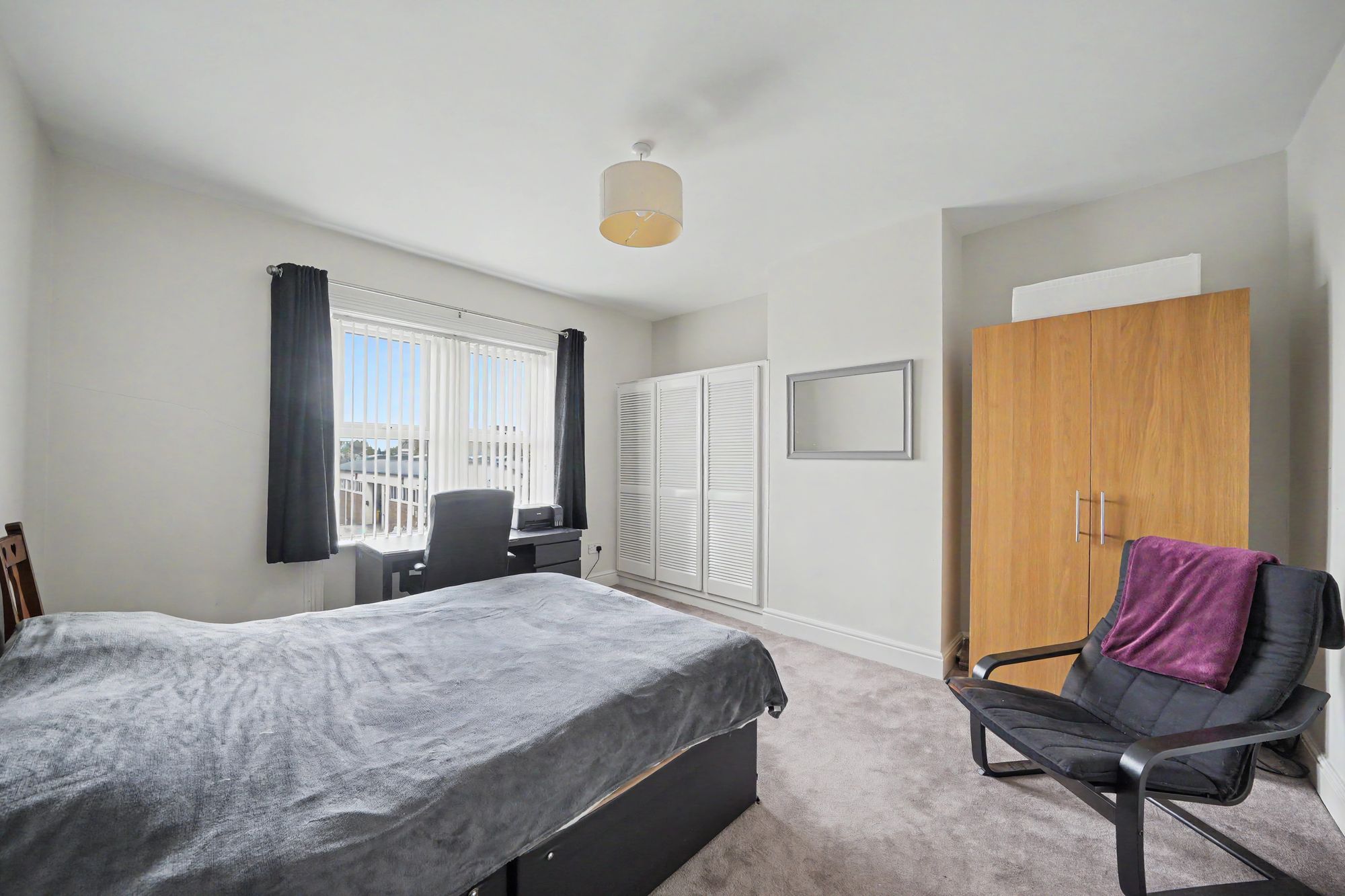 With a uPVC double glazed window, ceiling light point, central heating radiator and to the lefthand side of the chimney breast there are Louvered door cupboards and wardrobe.