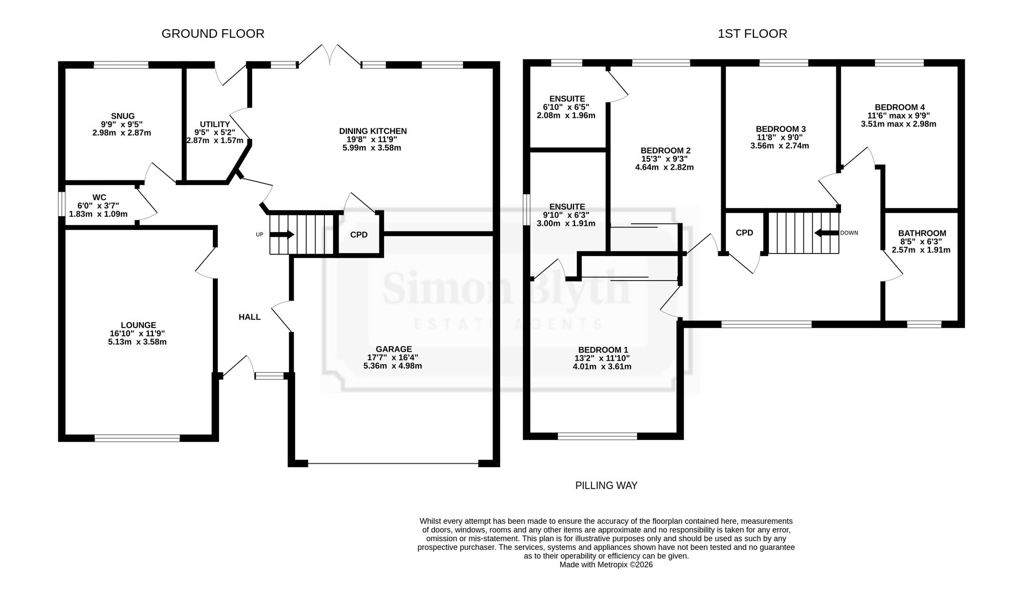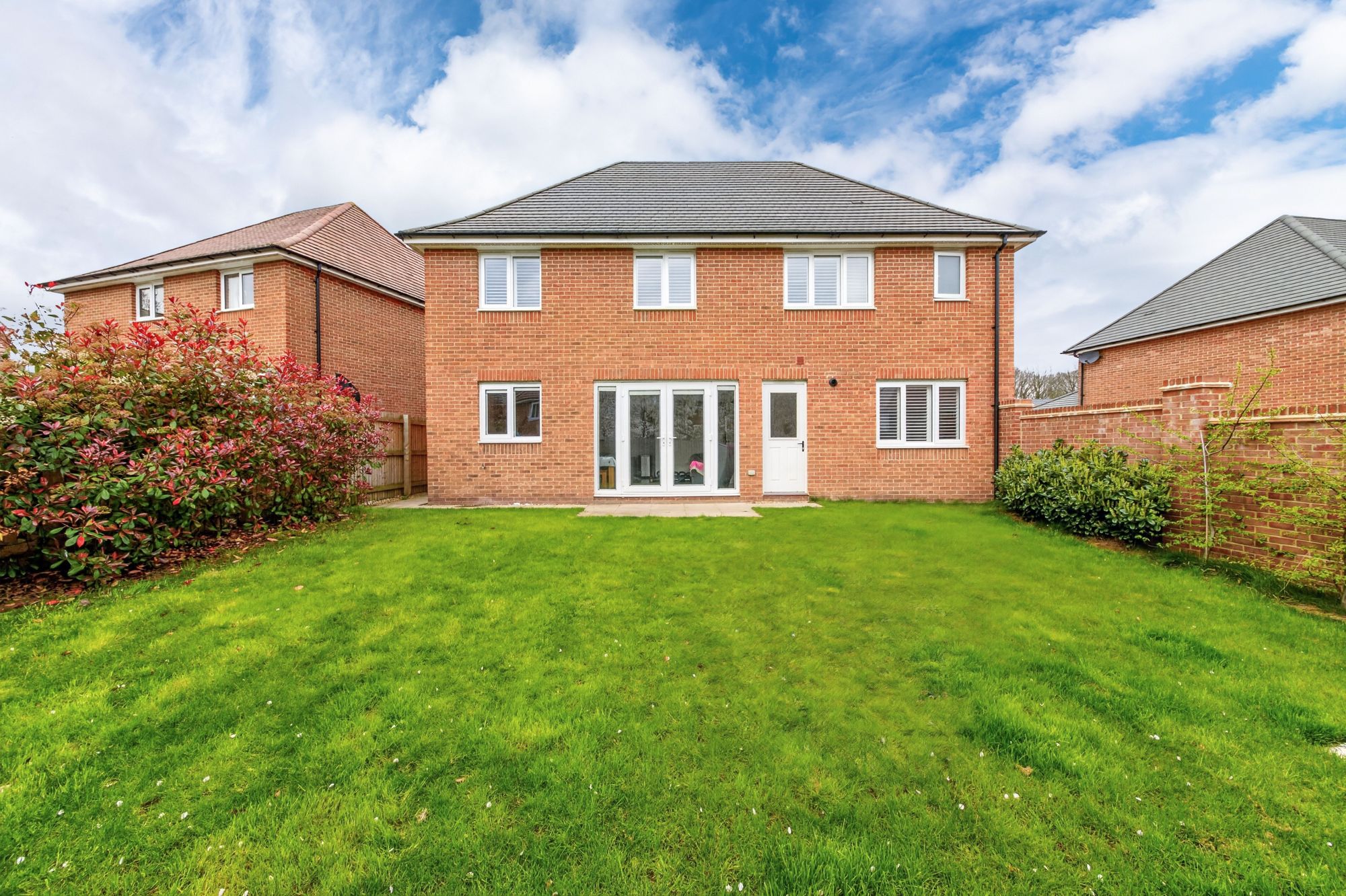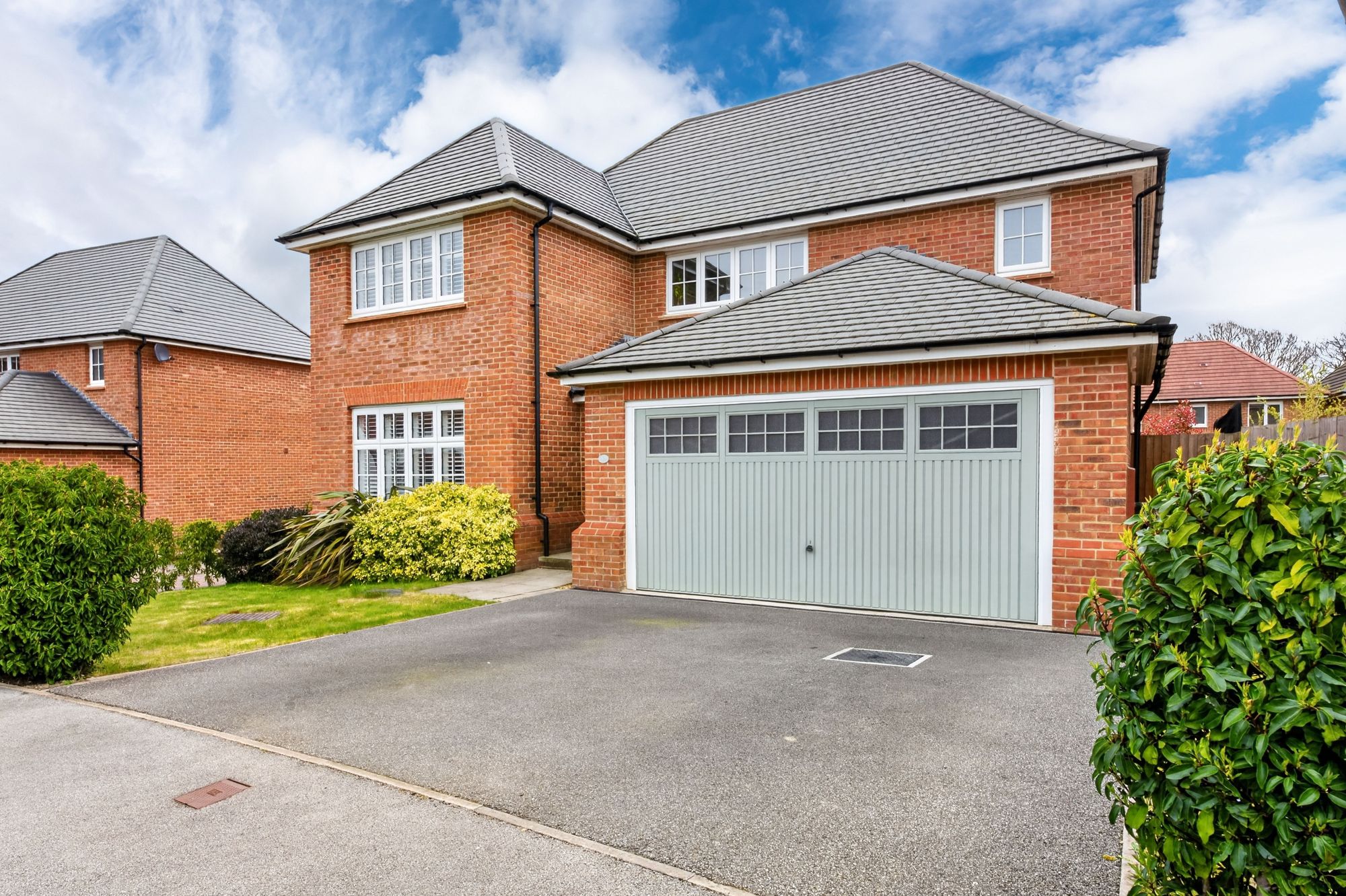 The property accommodation briefly comprises of entrance hall, downstairs WC, lounge, open-plan dining-kitchen with upgraded fixtures and fittings and with French doors leading to the rear garden, utility room and double integral garage to the ground floor. To the first floor there are four double bedrooms and the house bathroom, bedrooms one and two having ensuite shower room facilities. Externally there is a double driveway to the front, with lawn garden, to the rear is an enclosed garden with flat lawn and with two patio areas ideal for alfresco dining.