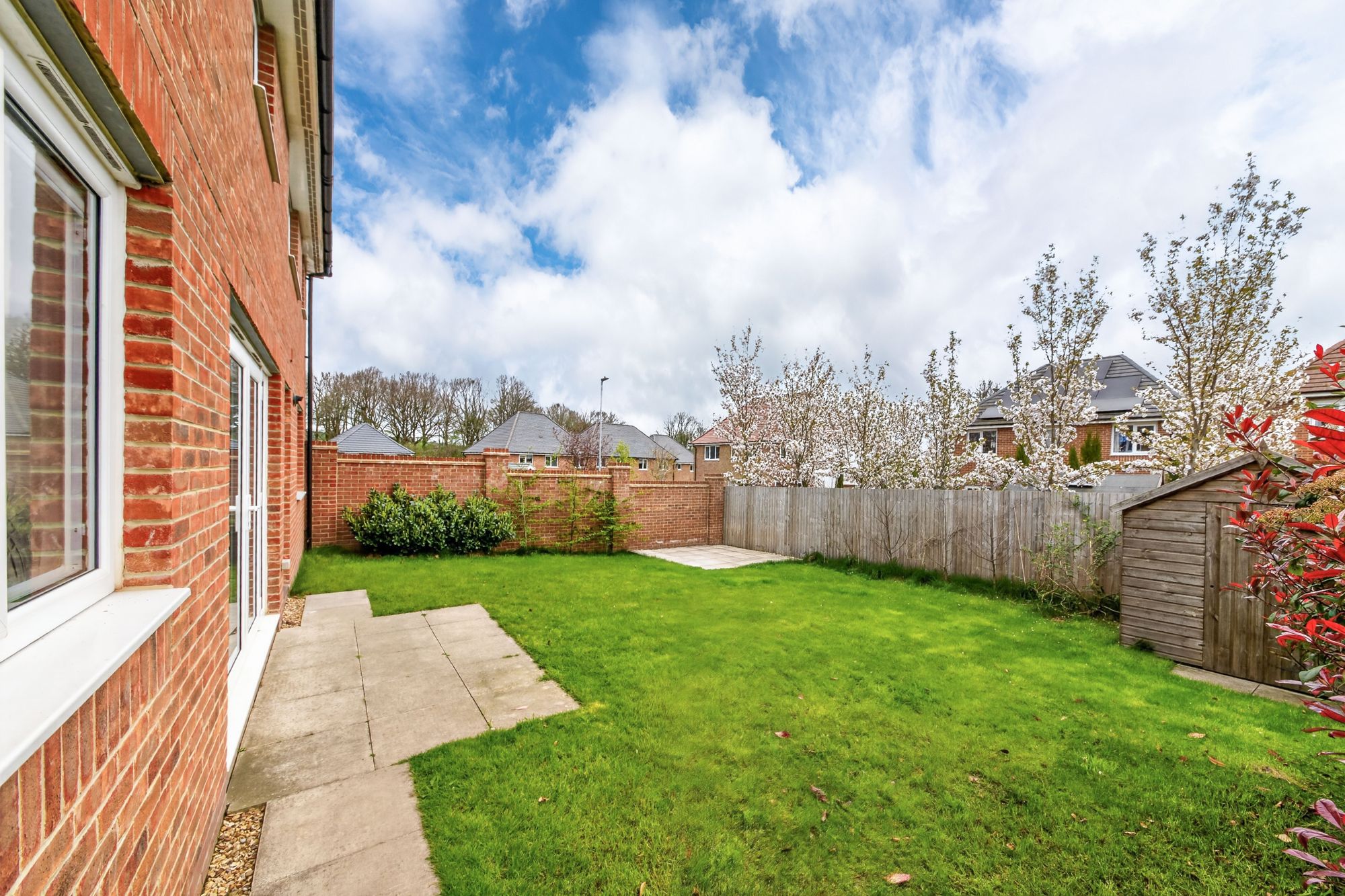 Taking the staircase from the entrance hall, you reach a particularly large, light and airy landing area which has sufficient space to be used as a study landing. It features a bank of double-glazed windows to the front elevation with pleasant views onto the development, and multi-panelled doors providing access to four double bedrooms, the house bathroom, and the airing cupboard over the stairs. There is a wooden banister with a spindle balustrade over the stairwell head, two ceiling light points, and a radiator, and a loft hatch provides access to an attic space.