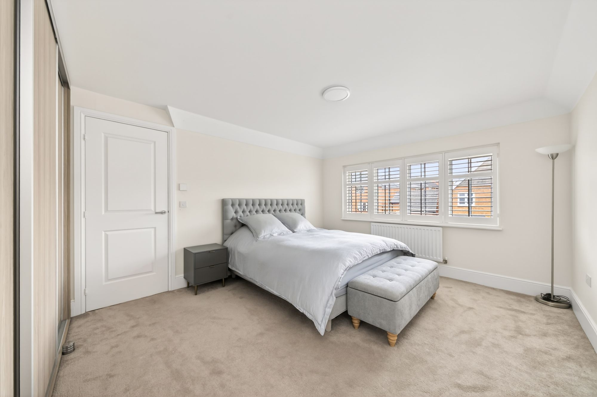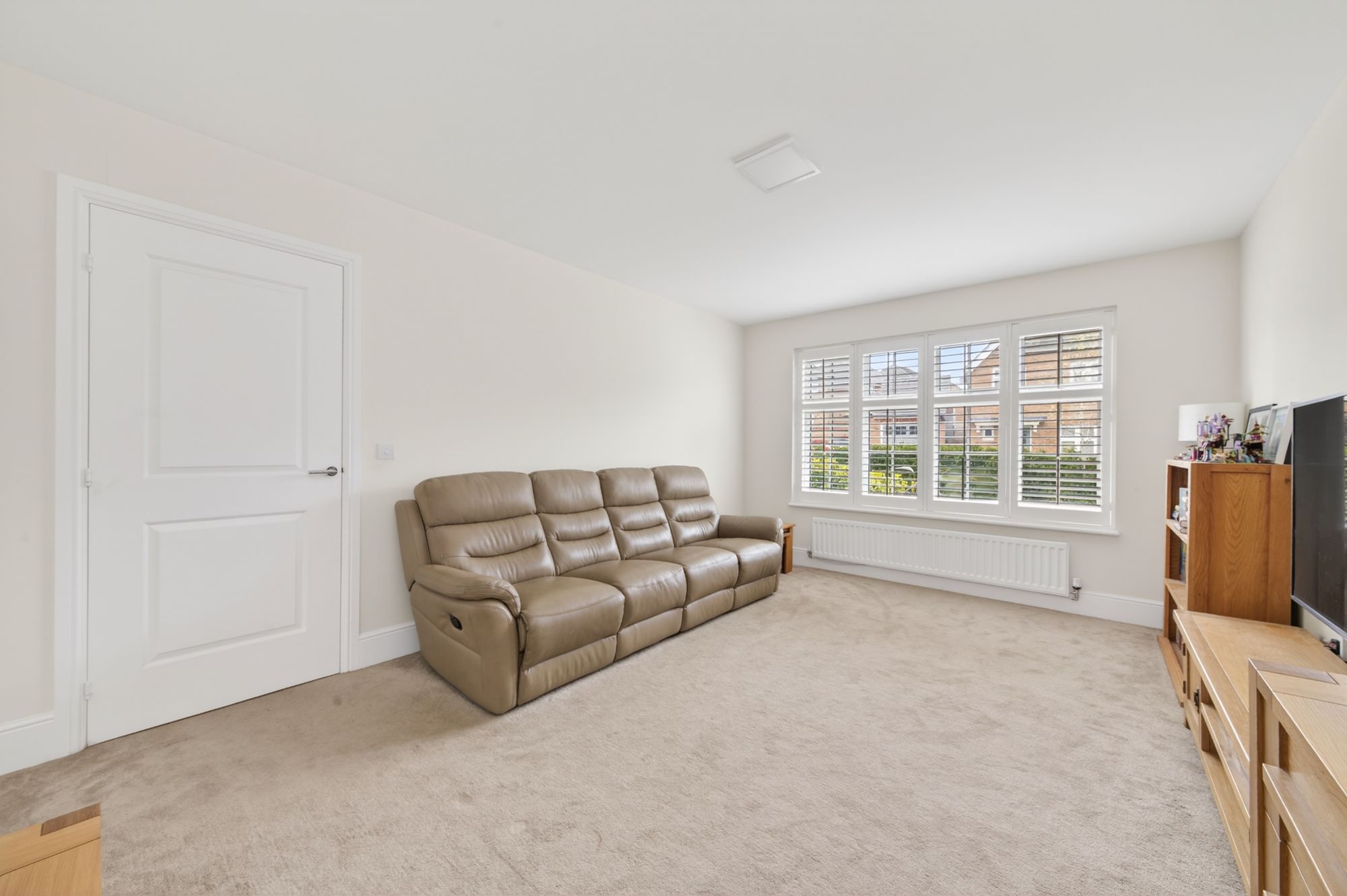 Bedroom four again is a light and airy double bedroom which has ample space for freestanding furniture. It features a bank of double-glazed windows to the rear elevation with plantation shutters, a ceiling light point, and a radiator.