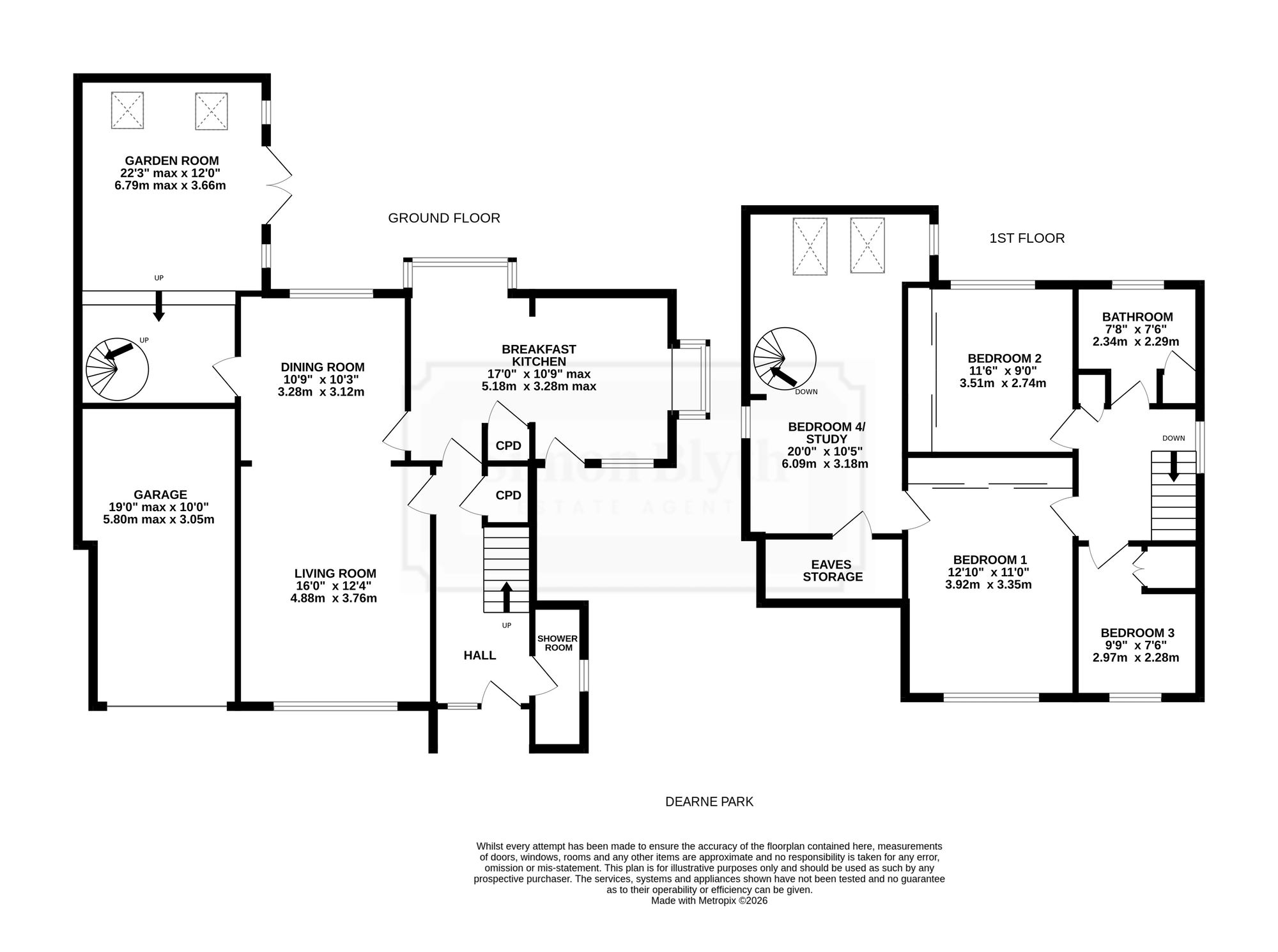 The property accommodation briefly comprises of entrance porch, entrance hall, ground floor shower room, open plan living/dining room, breakfast kitchen and sitting room to the ground floor. To the first floor there are four well proportioned bedrooms, and the house bathroom. Bedroom four having separate access via a spiral staircase from the garden room and having interconnecting door into bedroom one. Externally there is a block paved driveway providing off-street parking for multiple vehicles and leading to the attached garage. The gardens to the rear feature a flat lawn which sweeps across the rear and side of the property with a flat patio area, well-stocked flower and shrub beds and mature laurel hedge boundaries.