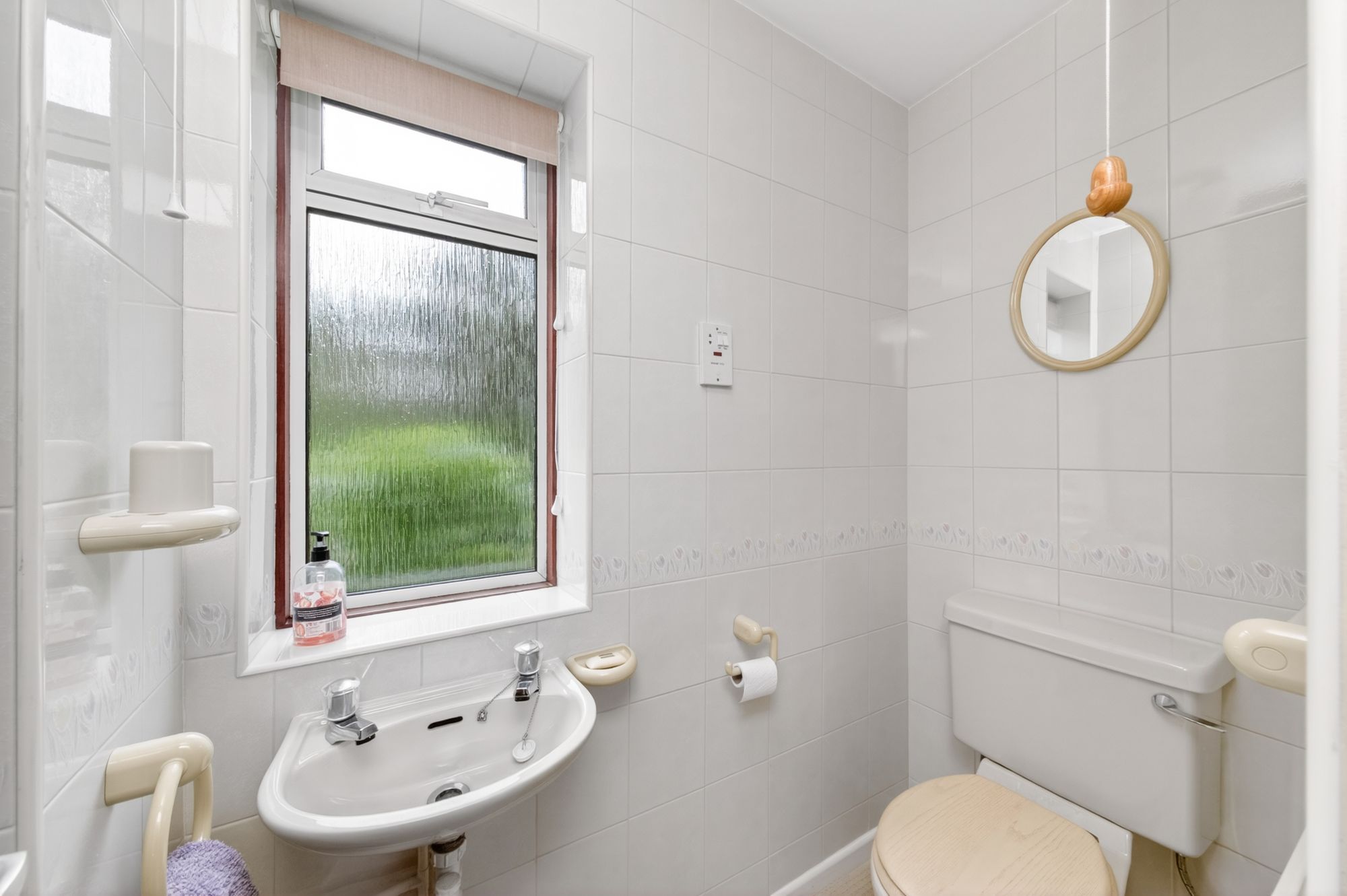 DOWNSTAIRS SHOWER ROOMThe downstairs shower room features a three-piece suite comprising a low-level WC, a wall-hung wash hand basin, and a fixed-frame shower cubicle with Mira Advanced electric shower. There is a double-glazed window with obscure glass to the side elevation, tiling to the walls, a ceiling light point, a shaver point and a radiator.