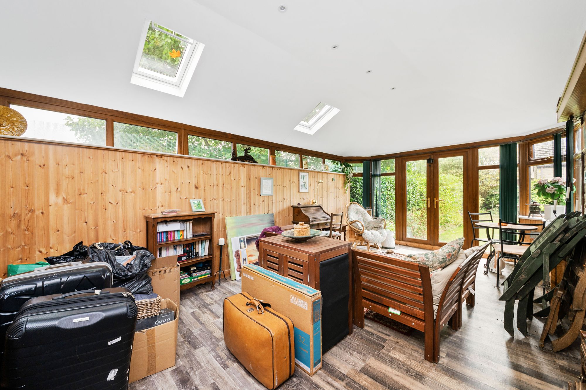 The conservatory enjoys a wealth of natural light with triple aspect windows to the front, rear and side elevations, double glazed French doors to the front elevation providing access to the front patio, laminate flooring, a radiator, ceiling light point and ample plug points.