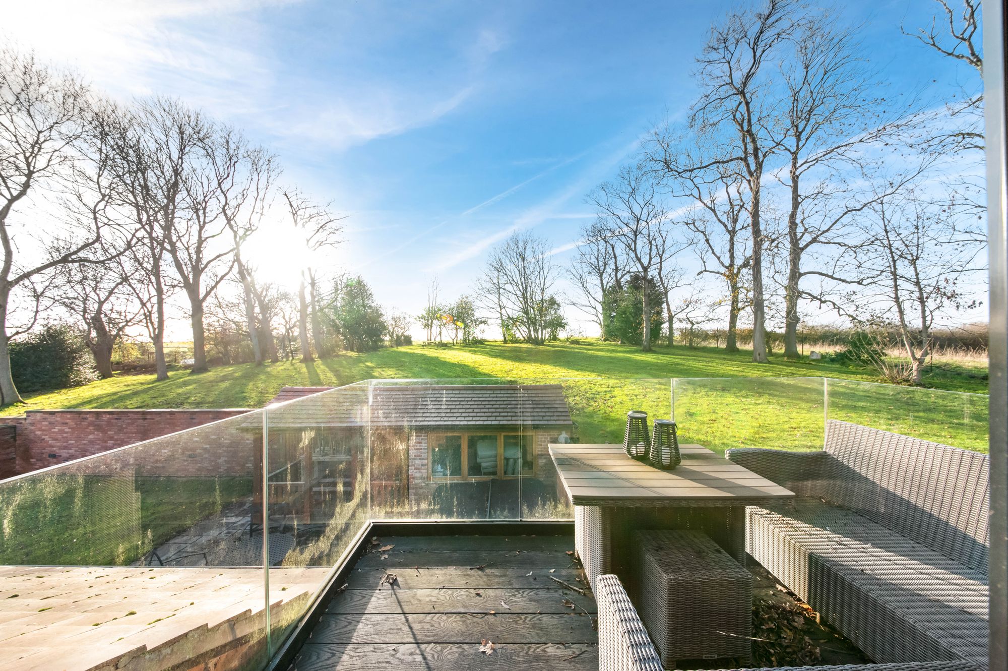 BALCONY/TERRACEThe terrace takes full advantage of pleasant open aspect views across the valley with composite decking, lighting, power, and glazed balustrade.