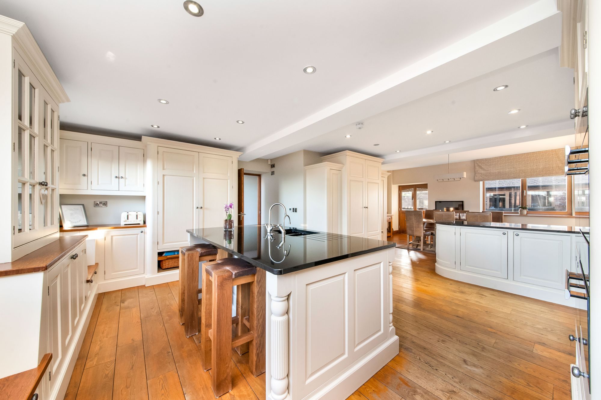KITCHEN AREAThere is a breakfast peninsular with cupboards beneath. The focal point of the kitchen is the fabulous breakfast island with an inset one and a half bowl ceramic sink unit with bevel drainer, Quooker hot water tap as well as a brushed chrome mixer tap above. The kitchen also benefits from under unit lighting, a fabulous butler cabinet and pantry cupboard. There is Fisher and Paykel dishwashers, and the kitchen area then seamlessly leads through to the dining area.