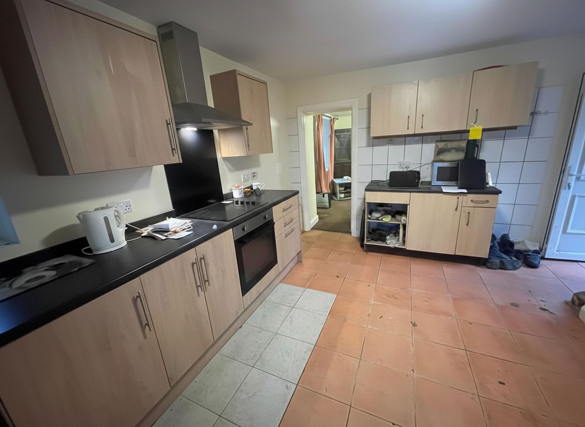 A uPVC door provides access to the living accommodation. The dining kitchen enjoys pleasant views out over the property's rear gardens and the fields beyond. This good-sized room features ceramic tile flooring and tiled splashbacks where appropriate. The kitchen offers a generous range of work surfaces and modern wall and base units, which incorporate a stainless steel sink with mixer tap, an integrated stainless steel oven with glazed front, an electric hob with an attractive splashback, and a stainless steel extractor fan above. There is a central ceiling light point and a useful understairs storage cupboard. A doorway leads through to the lounge, and the staircase rises to the first floor.