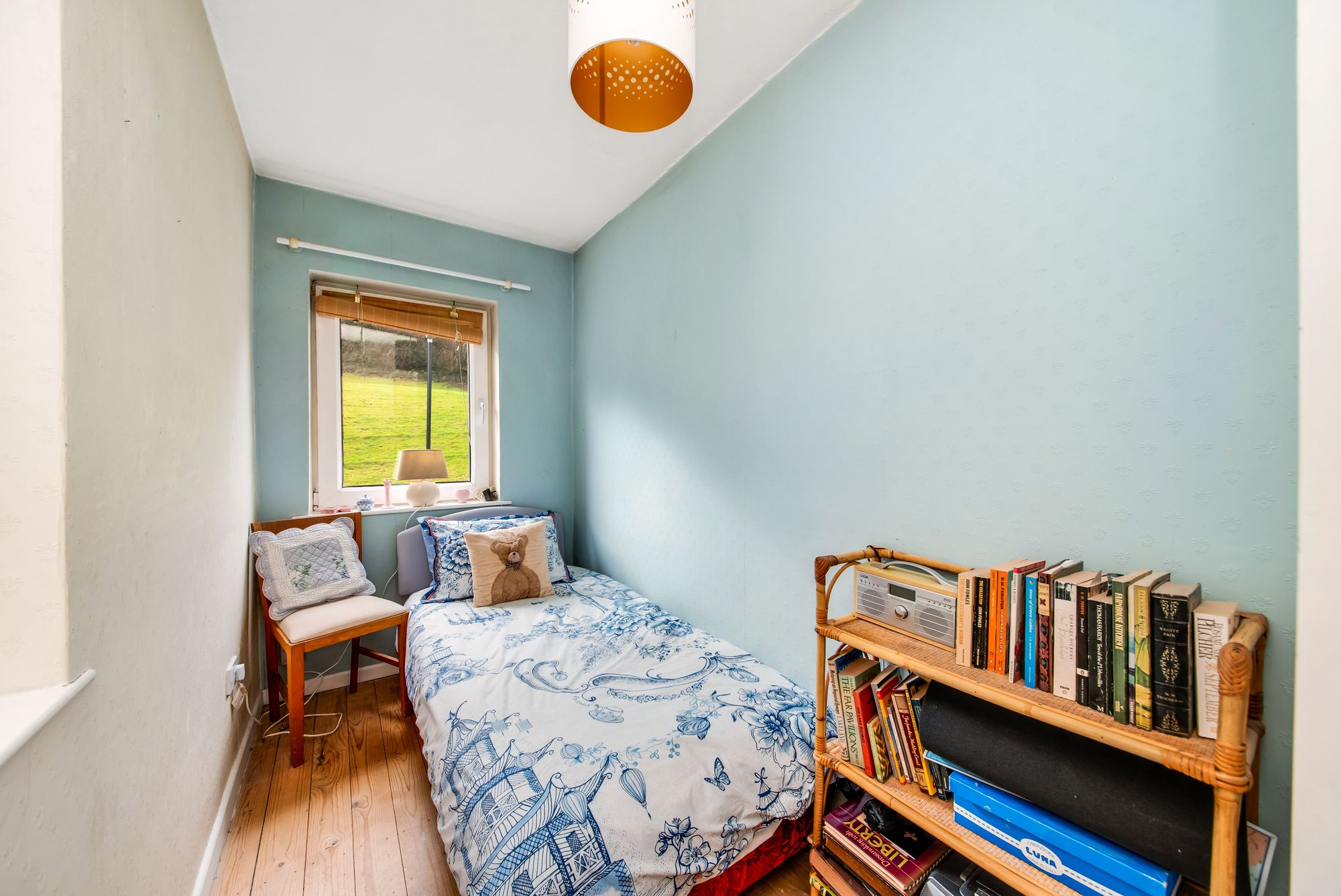Bedroom two is a dual aspect single bedroom which features a floor to ceiling, fitted wardrobe, which has a hanging rail and with storage cupboard above. There is exposed timber floorboarding, a ceiling light point, radiator and double-glazed windows to both the front and side elevations.