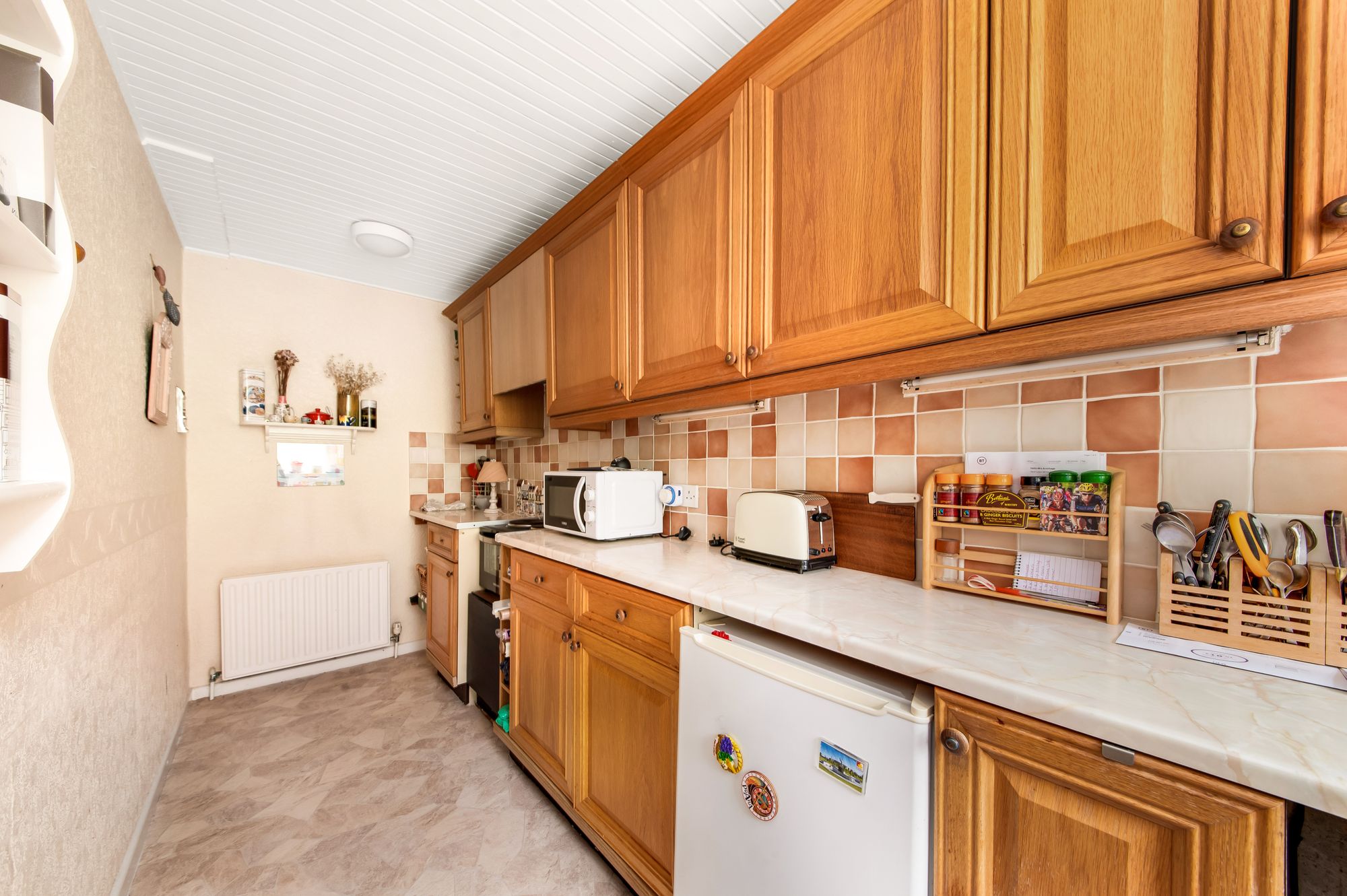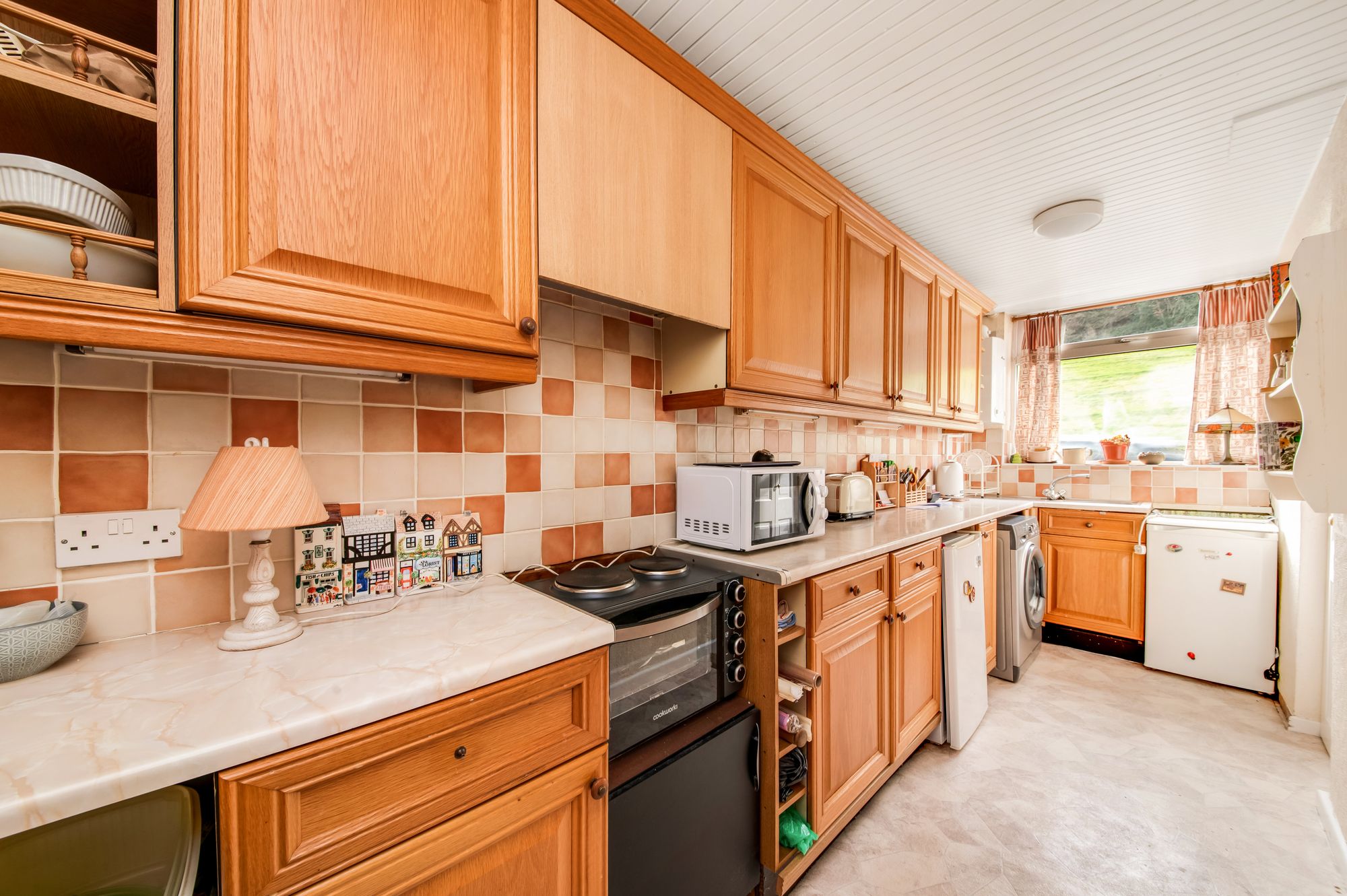 The kitchen features a range of fitted wall and base units with shaker style cupboard fronts and with complimentary rolled edge work surfaces over which incorporate a single bowl stainless steel sink and drainer unit with mixer tap. There is tiling to the splash areas, under unit lighting, space and provisions for an automatic washing machine and under counter fridge and freezer units and there is space for an electric cooker with integrated cooker hood over. Additionally, there is a panelled ceiling with two ceiling light points, a radiator and a double-glazed window to the front elevation with pleasant open aspect views. The kitchen also houses the wall-mounted Worcester Bosch boiler.
