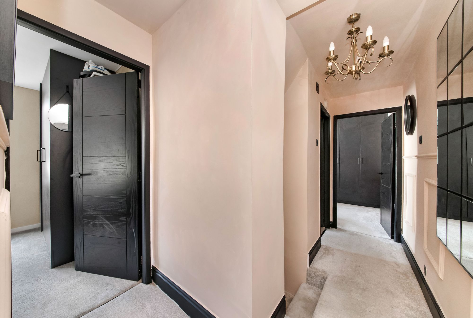 Taking the staircase from the entrance, you reach the first floor landing. There is decorative wall panelling, a decorative dado rail, a ceiling light point, and doors providing access to three well-proportioned bedrooms and the house bathroom.