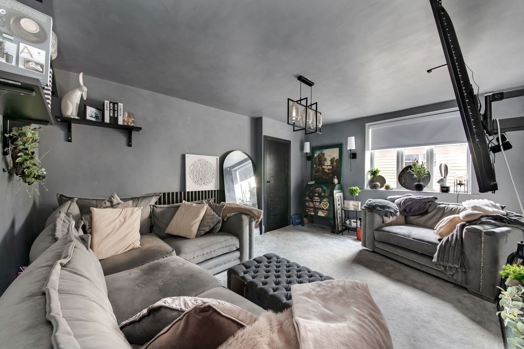The lounge is decorated to a high standard and features a bank of double-glazed windows to the front elevation. There is a central ceiling light point, two wall light points, and a cast-iron column radiator.
