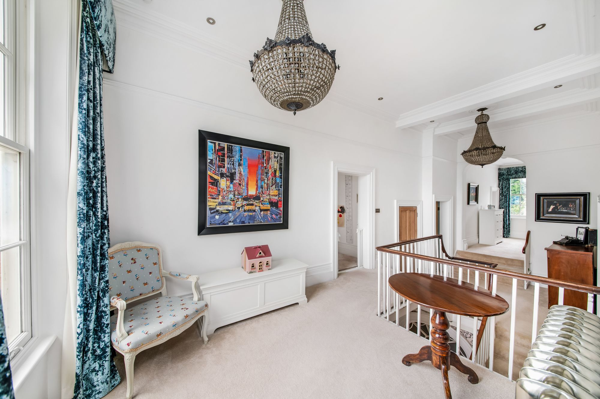 In a highly commutable location, this Grade II listed much-loved period home has a fabulous amount of character, both inside and out. It's six/ seven bedroom accommodation includes such features as impressive entrance hallway, sitting room, second sitting room stroke cinema room, library/snug, family room adjoining the huge conservatory which itself adjoins the dining kitchen, utility room, home office, entertaining area and gym. Five bedrooms on the first floor level, a number of bathrooms. Two bedrooms on the top floor level.