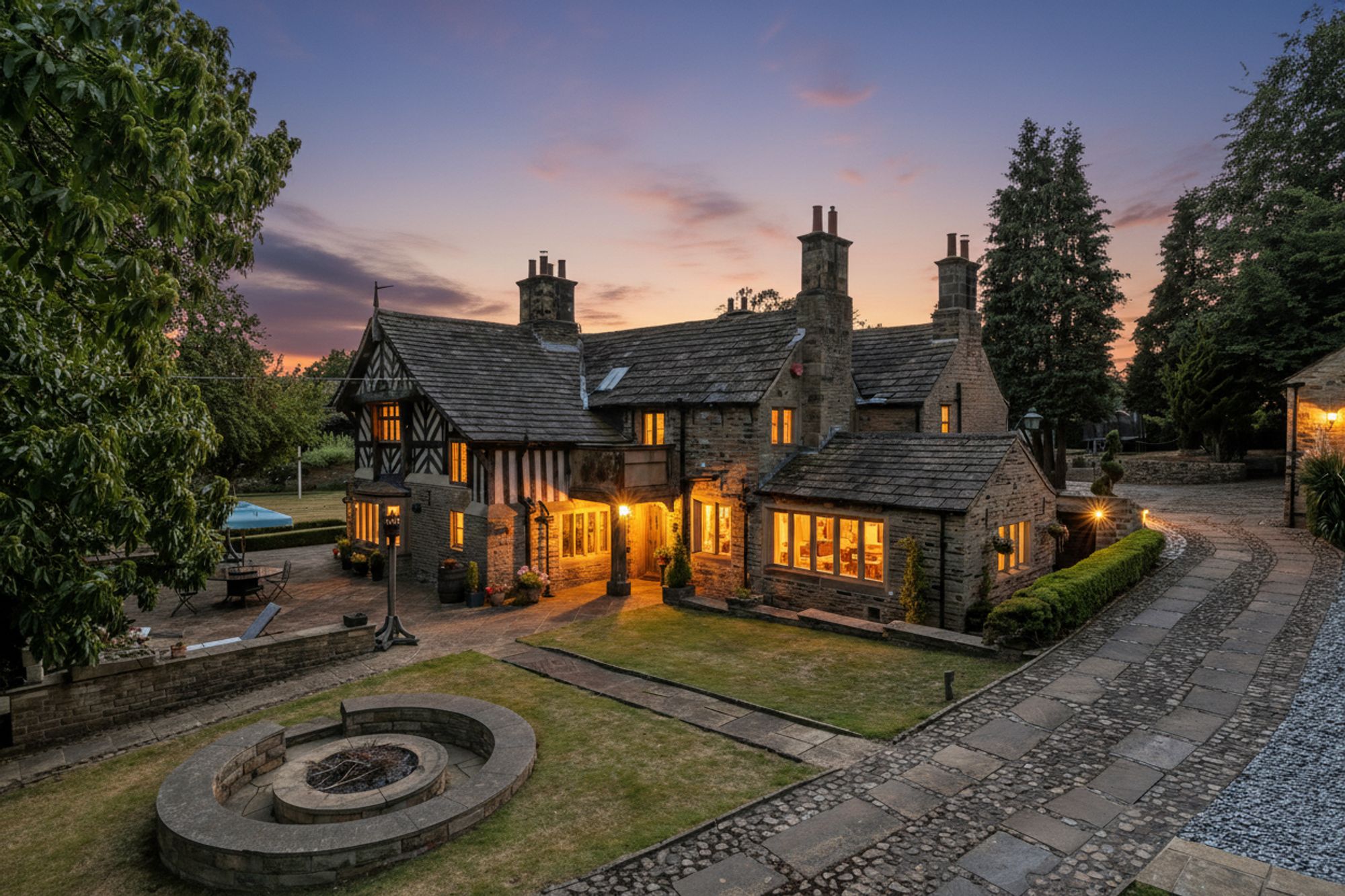 The accommodation extends to around 3600 sq ft, whilst externally the entrance from Pinfold Lane leads around to the rear giving access to a double garage with store room over, extensive parking and second gated entrance from Park Drive North. There are mature walled gardens with established trees with seating area/firepit.