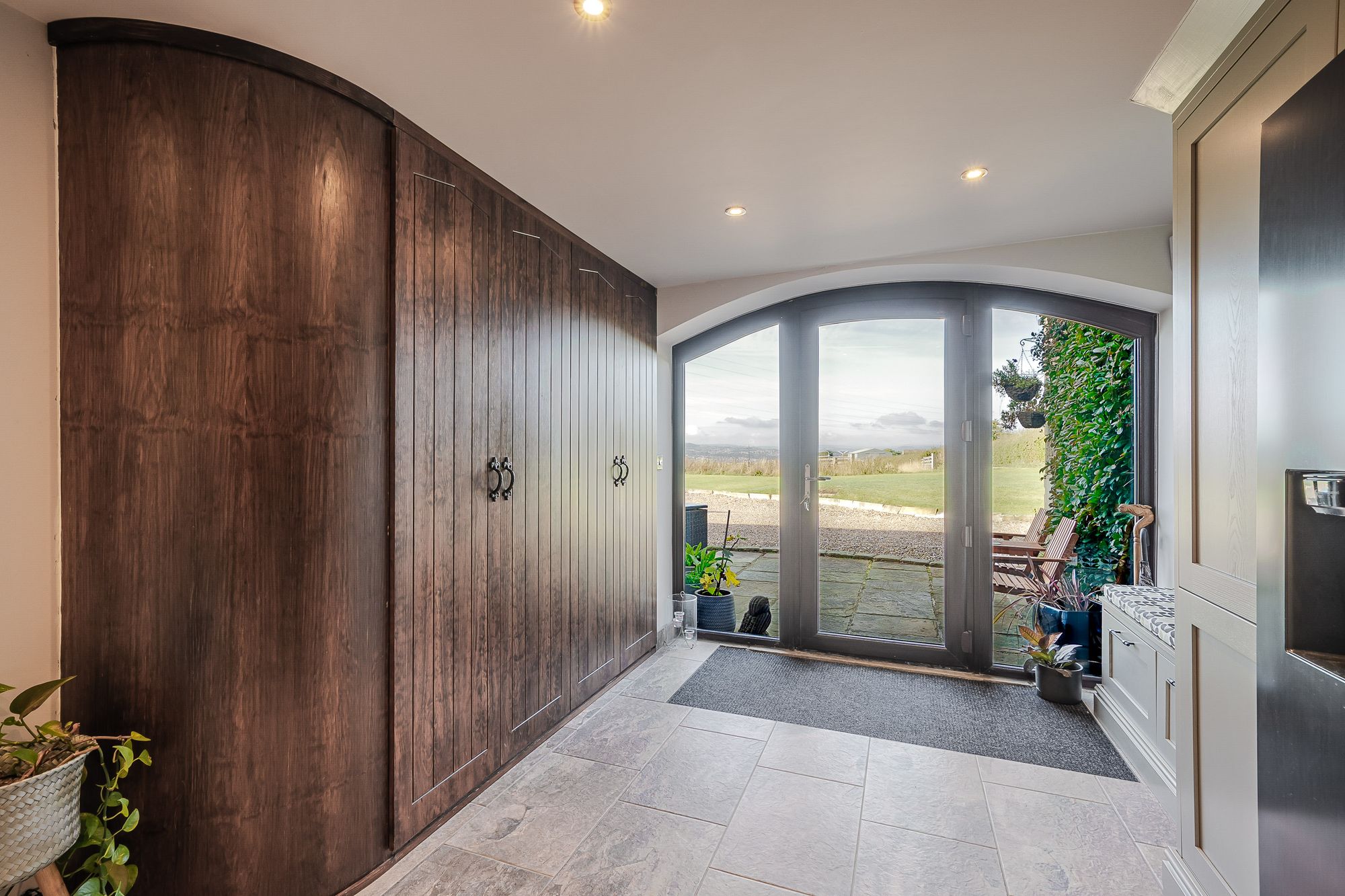 Inner VestibuleThe inner vestibule has an arched timber door which leads to the home office and two doors which lead to the downstairs WC and to a useful cloaks cupboard. The vestibule then leads into the inner hallway which features a fabulous vaulted ceiling with exposed timber truss and beams on display. The inner hallway then gives way to the snug.