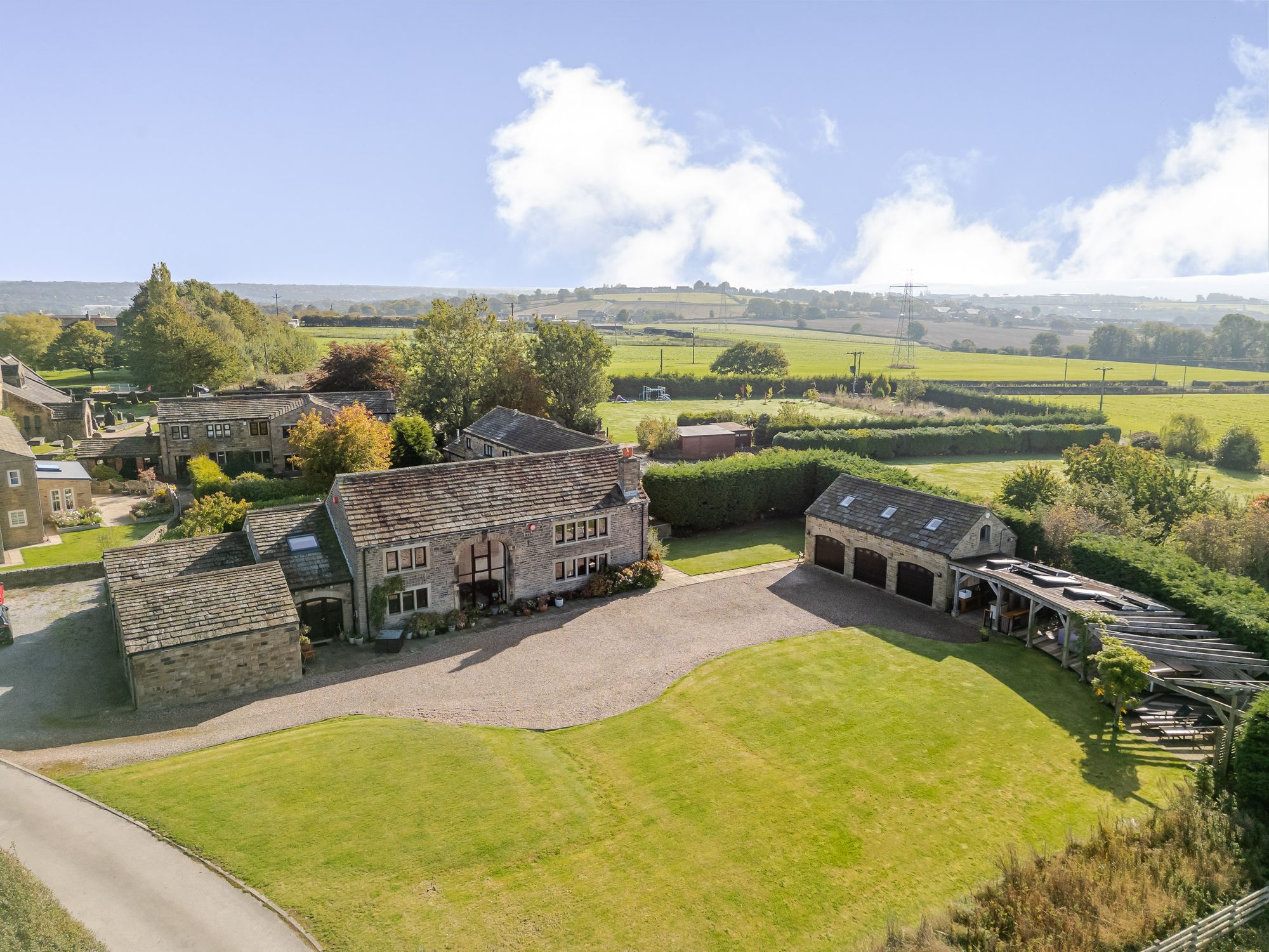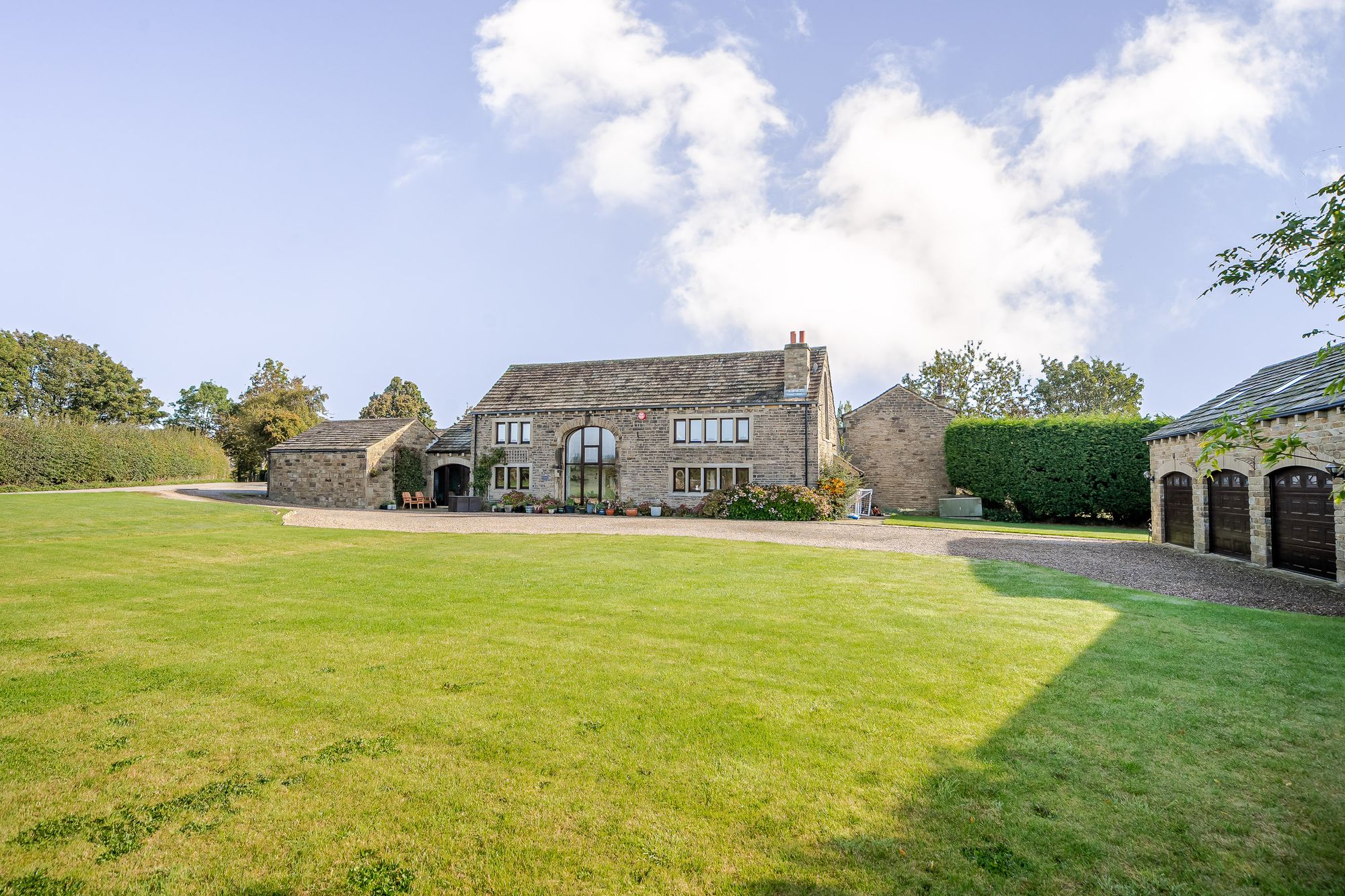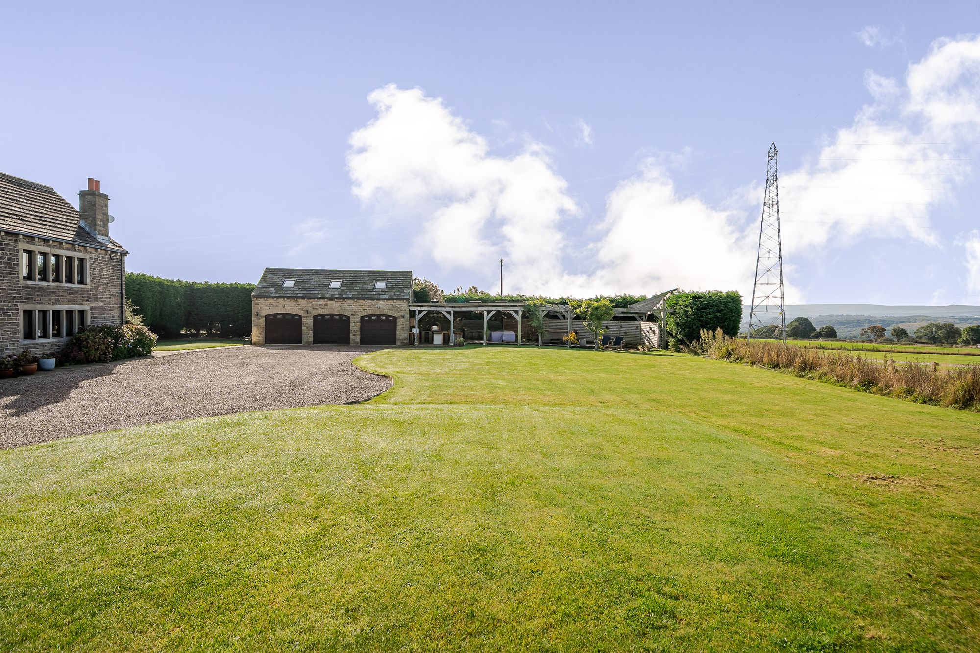 Approached through electric gates there is an extensive parking area together with detached triple garage block with gym over and level gardens ideal for alfresco entertaining. There are excellent local amenities located close by in neighbouring Brighouse with Railway Station, four supermarkets and just a short drive from J25 of M62 linking East Lancashire to West Yorkshire.