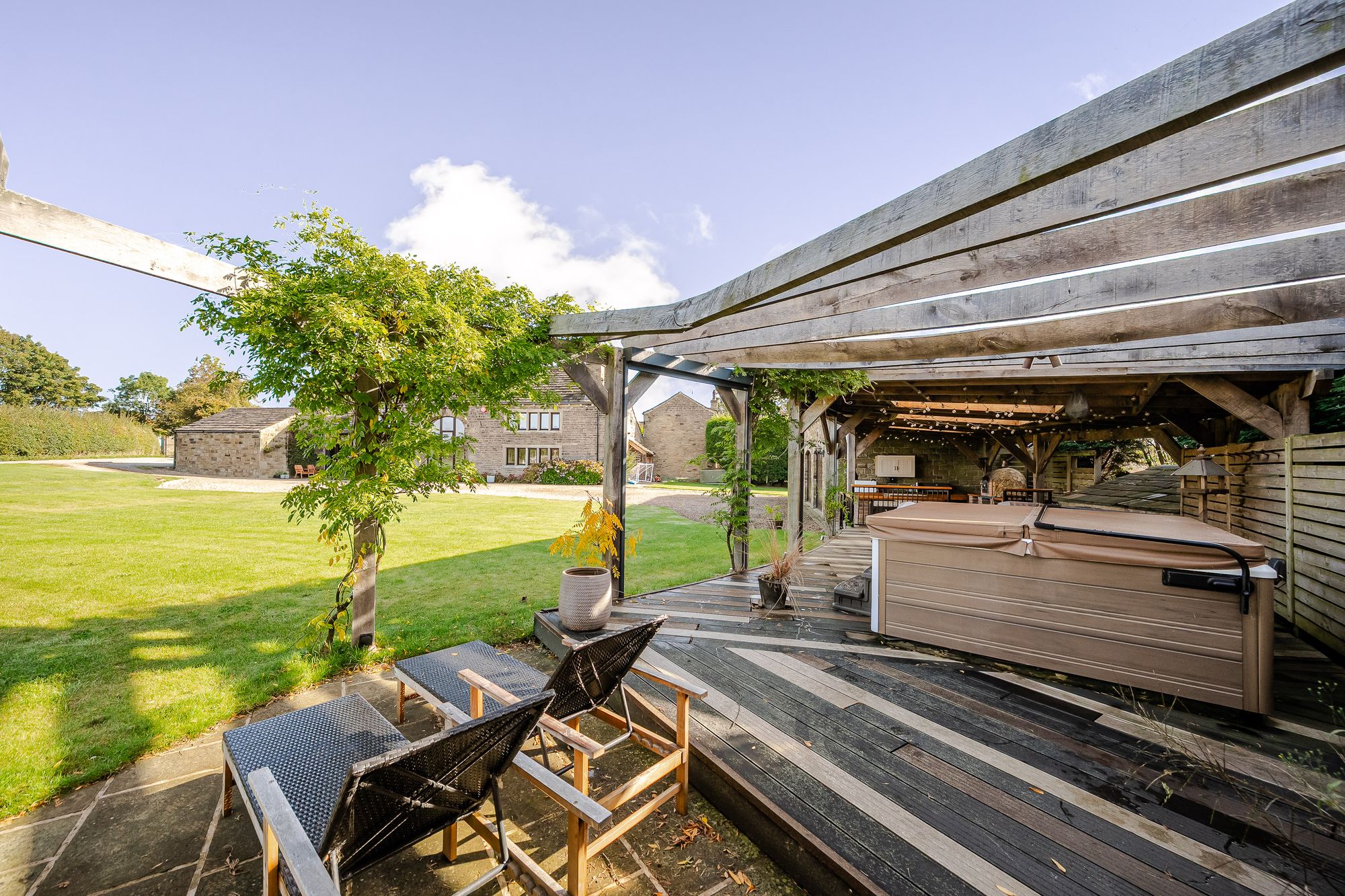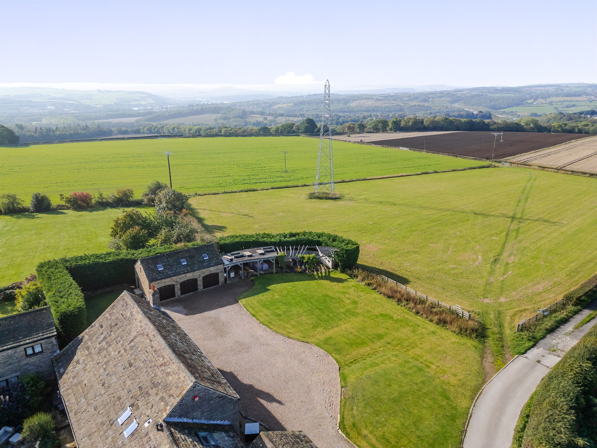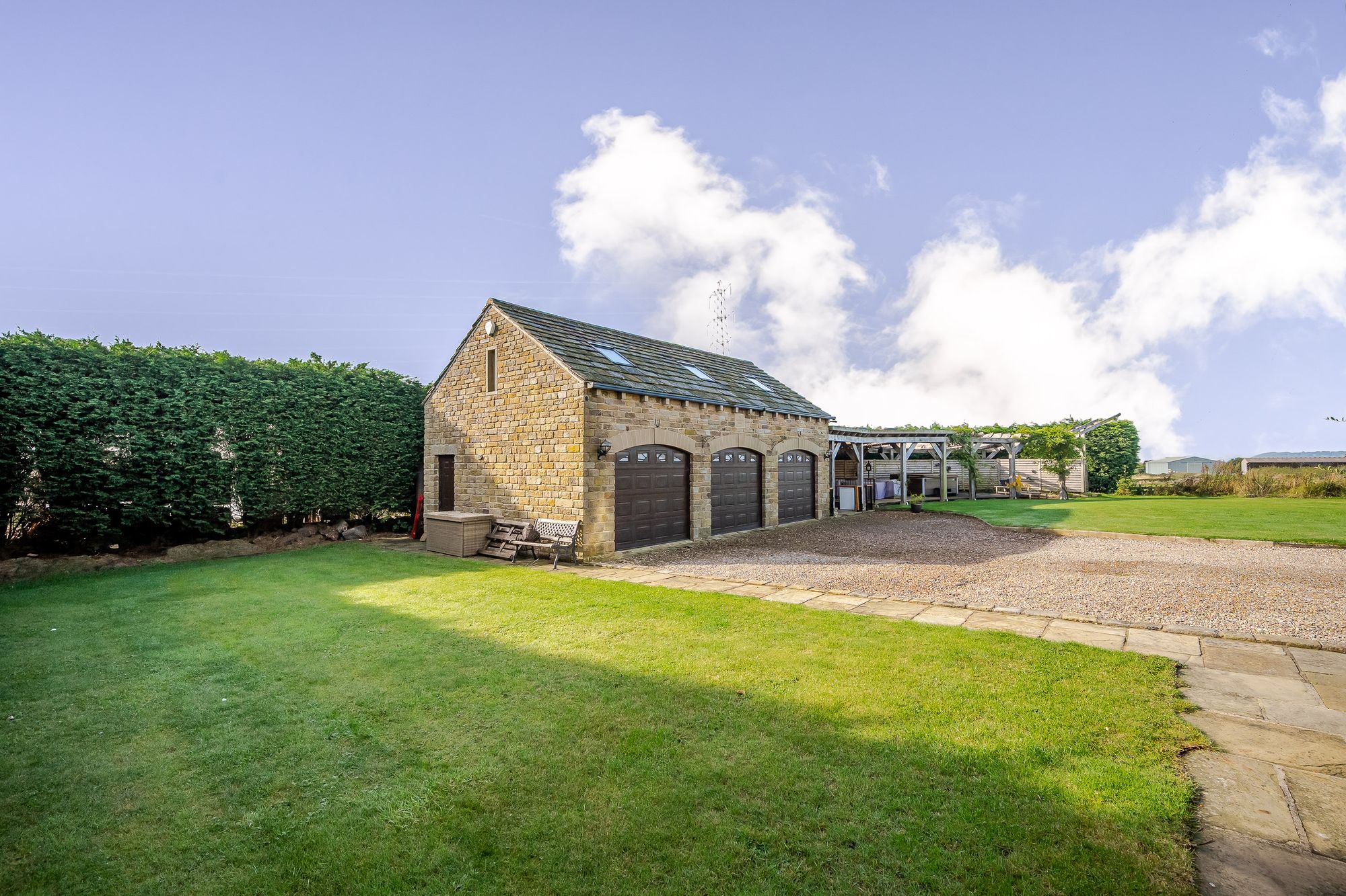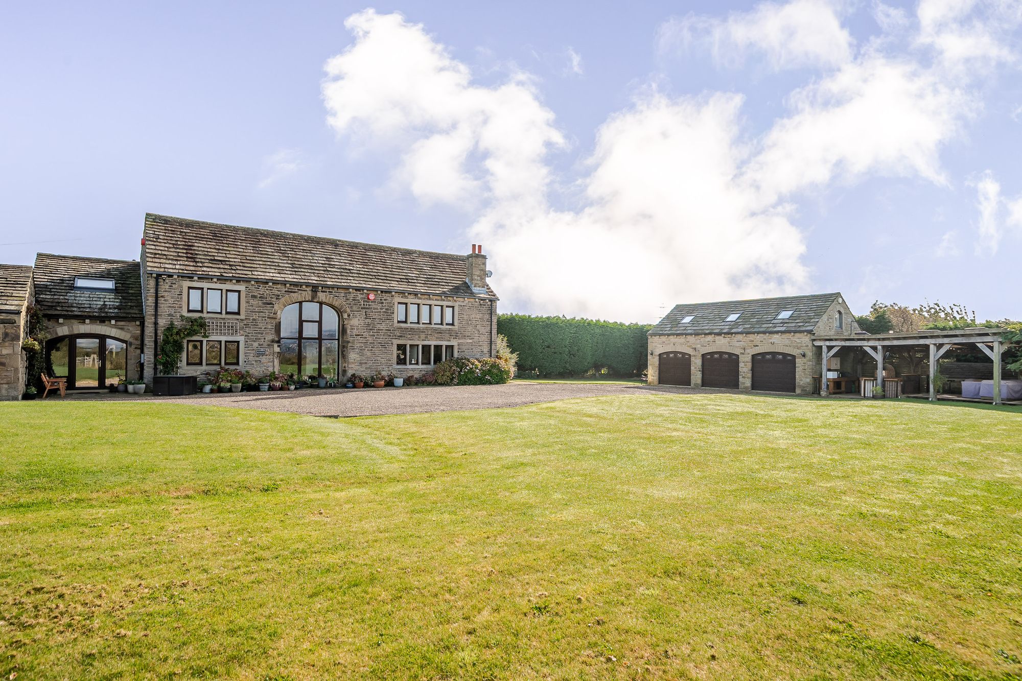 Approached through electric gates there is an extensive parking area together with detached triple garage block with gym over and level gardens ideal for alfresco entertaining. There are excellent local amenities located close by in neighbouring Brighouse with Railway Station, four supermarkets and just a short drive from J25 of M62 linking East Lancashire to West Yorkshire.