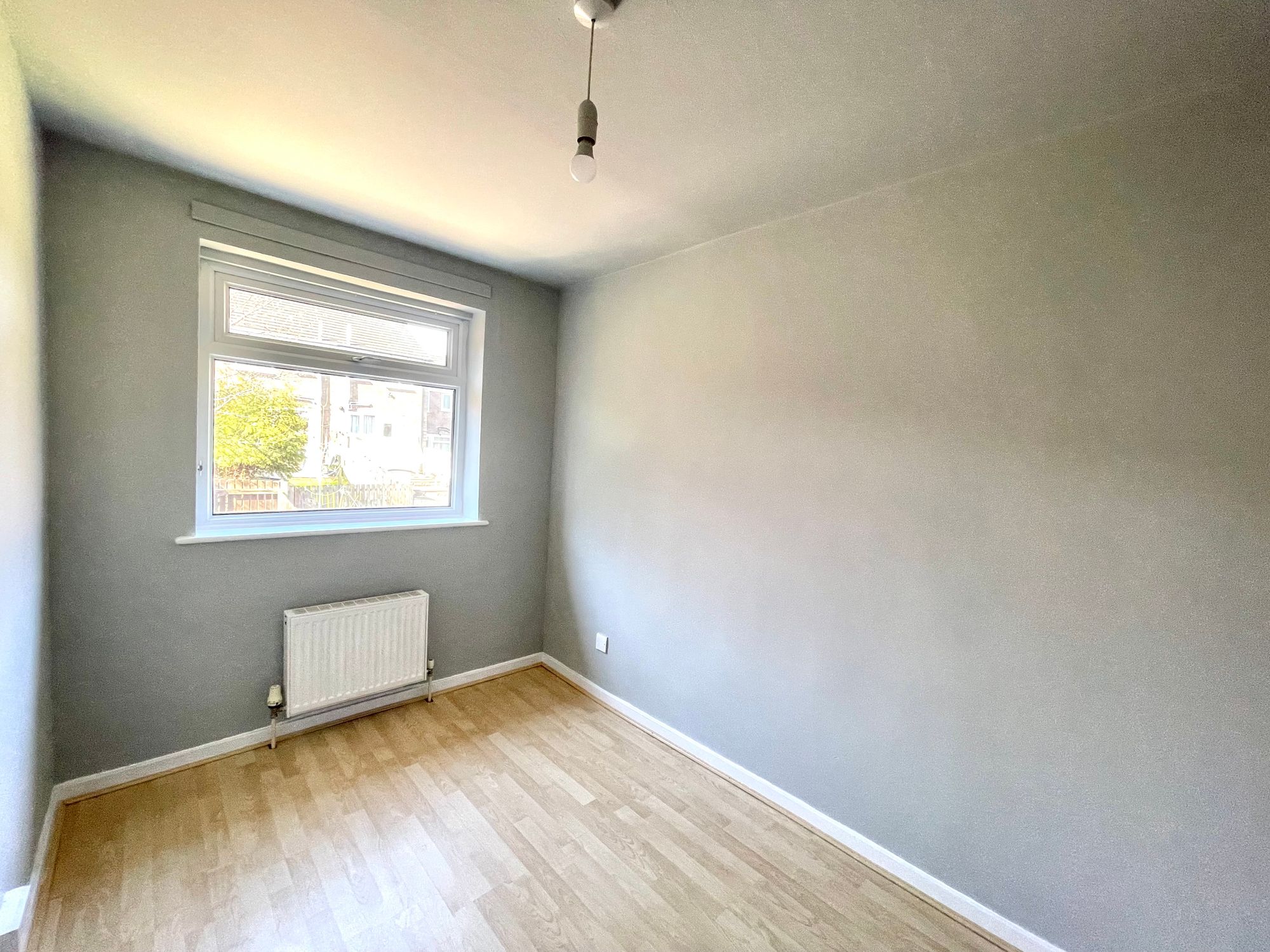 A double room with a uPVC double glazed window looking out to the front and enjoying some far-reaching views which to one side stretch across to Grimscar Woods. There is a ceiling light point, fitted double bed head, central heating radiator, laminate flooring and useful storage cupboard over the stairs.