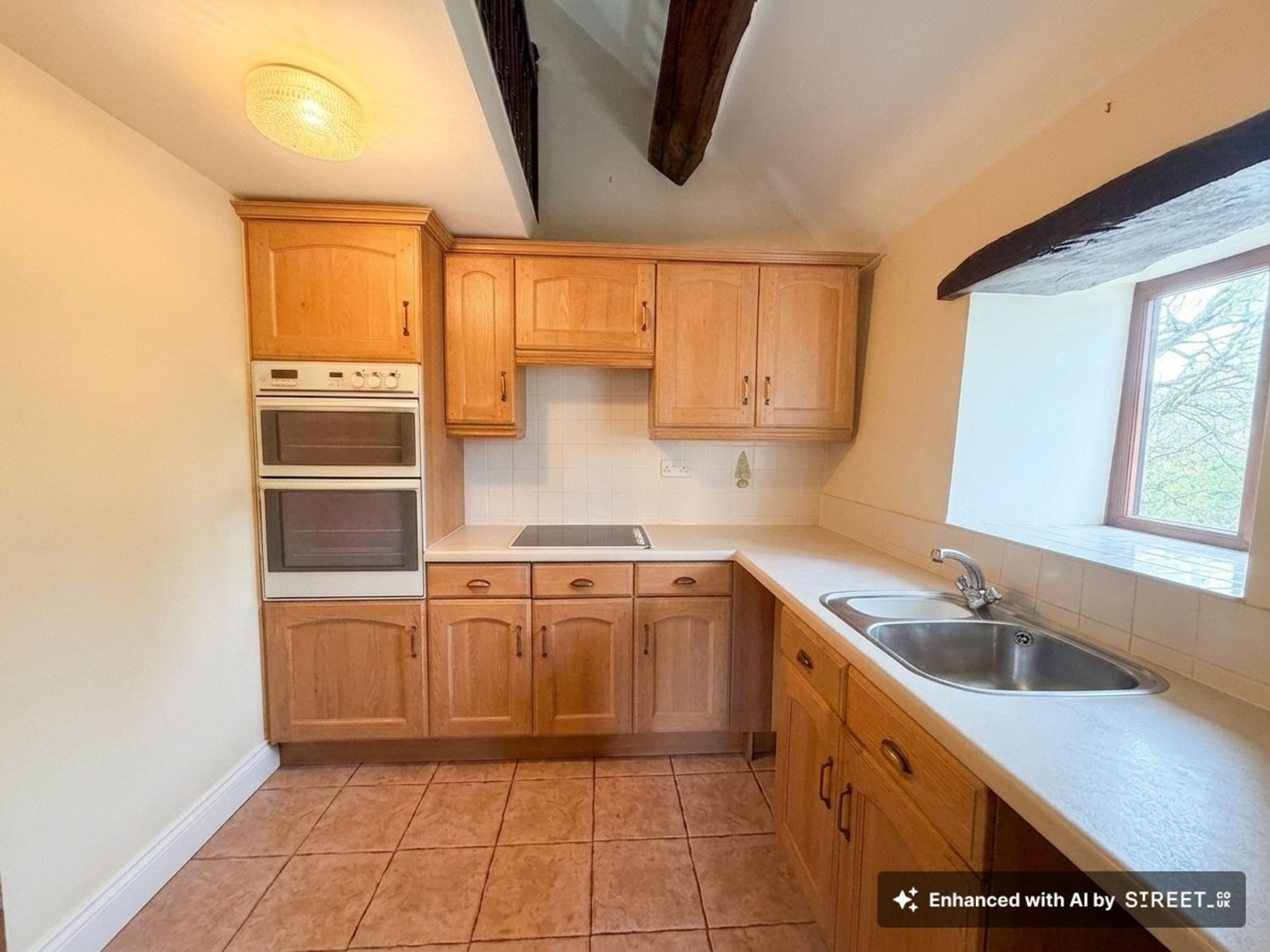 KITCHENWith a range of wall and base units in an oak shaker style, incorporating integrated appliances including an oven and grill. There is space for a fridge freezer, plumbing for a washing machine, and a one and a half bowl stainless steel sink with chrome mixer tap over. The kitchen also benefits from exposed ceiling beams, a ceiling light, a timber double glazed window to the rear elevation, and tiled flooring.