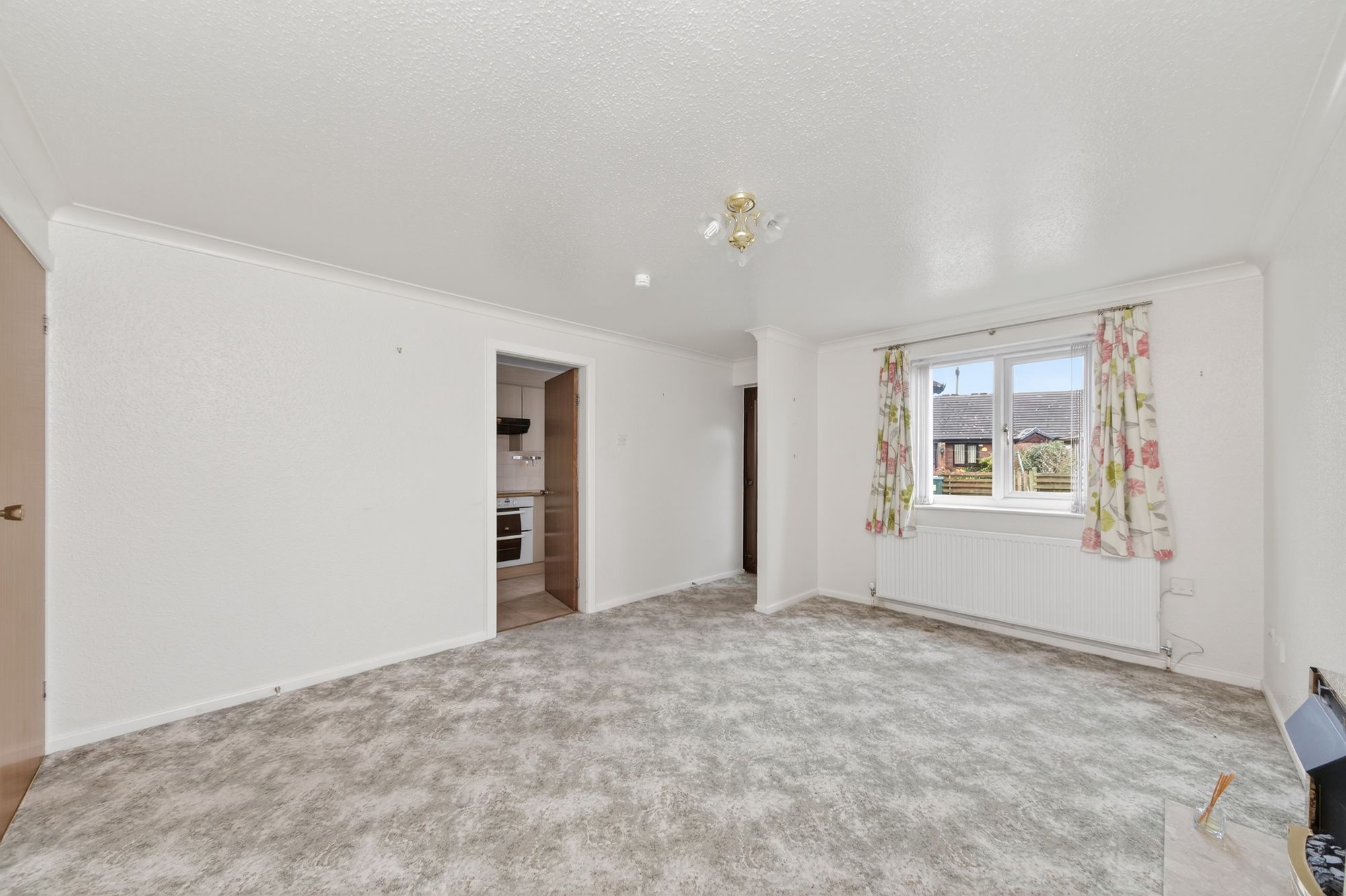 As the photography suggests, the open-plan living/dining room is a generously proportioned reception room which enjoys a great deal of natural light cascading through the double-glazed bank of windows to the front elevation. There is decorative coving to the ceiling, a central ceiling light point, a radiator, space for an electric fireplace, and doors providing access to the kitchen and the inner hallway.
