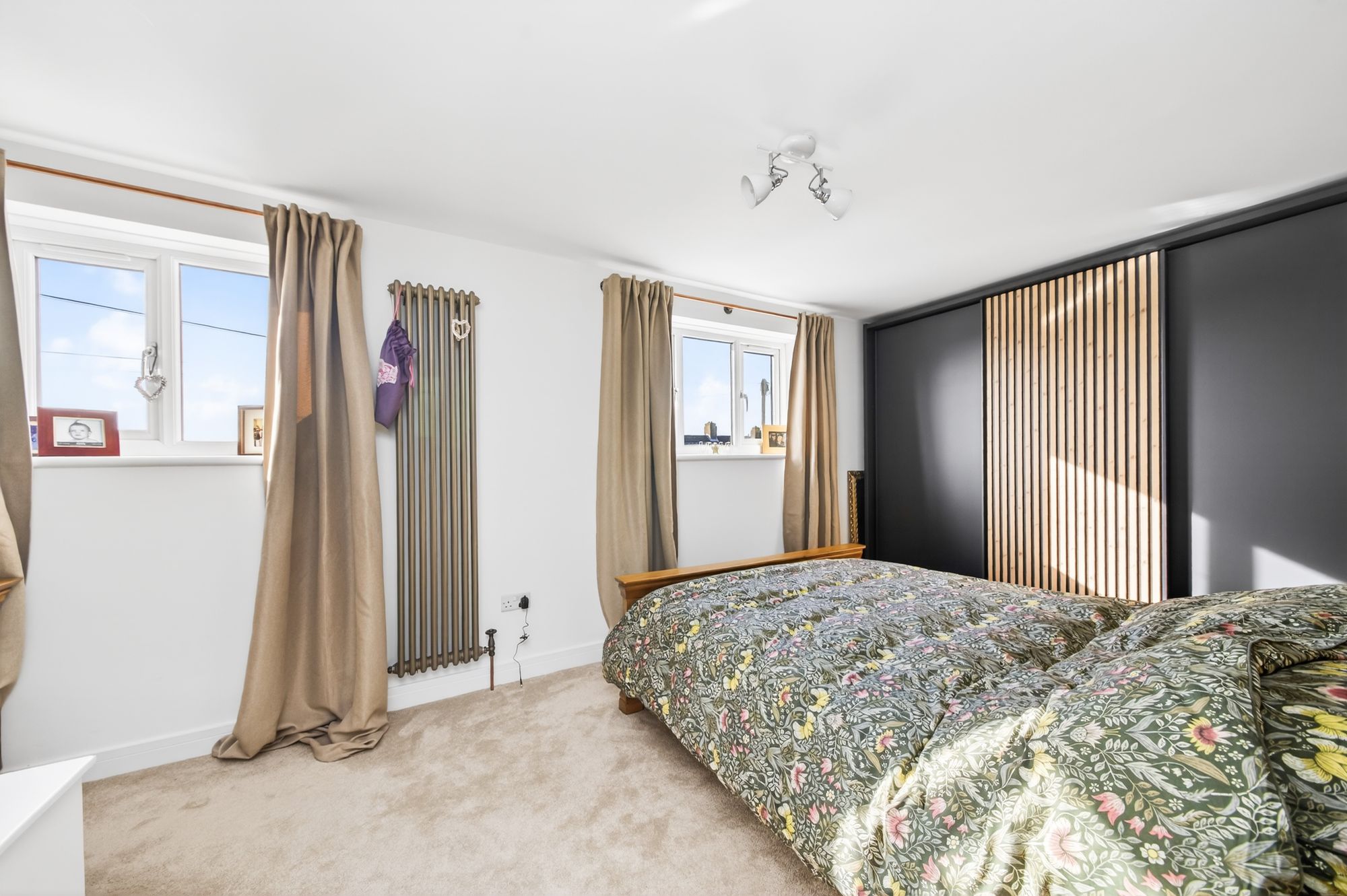 Bedroom two is again a light and airy double bedroom with ample space for freestanding furniture. The room features a central ceiling light point, a cast-iron column radiator, and a bank of double-glazed windows to the rear elevation, enjoying a pleasant tree-lined backdrop which, during the winter months, opens up views across nearby fields. There is also a floor-to-ceiling fitted cupboard with shelving in situ, providing a great deal of storage.