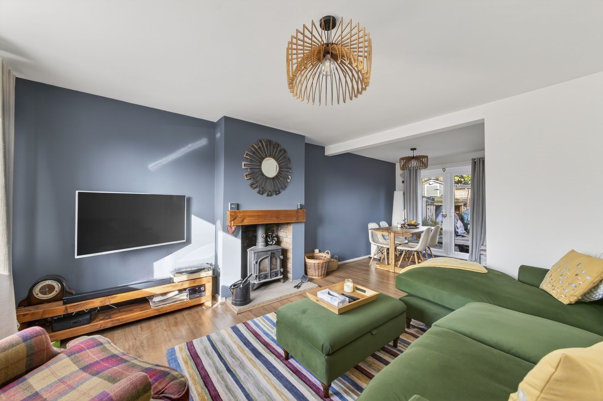 The property accommodation briefly comprises of entrance, lounge with log burning stove, open-plan dining-kitchen with French doors leading to the garden and a understairs pantry to the ground floor. To the first floor there are two generous proportioned double bedrooms, the principal room historically has been two separate bedrooms (floor layout plan provided) and the house shower room. Externally there is a double driveway to the front providing ample off street parking, to the rear is a low maintenance, enclosed garden with Indian stone patio and artificial lawn.