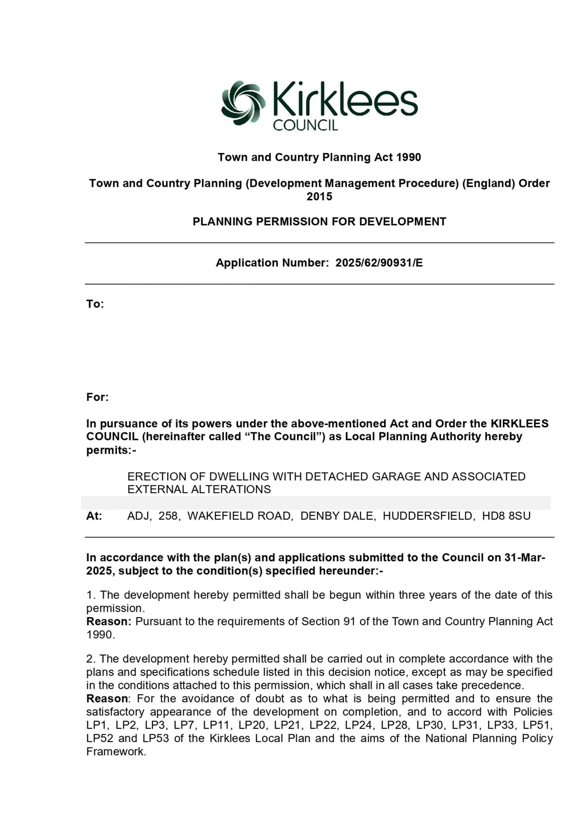 Planning application No: 2025/62/90931/E
