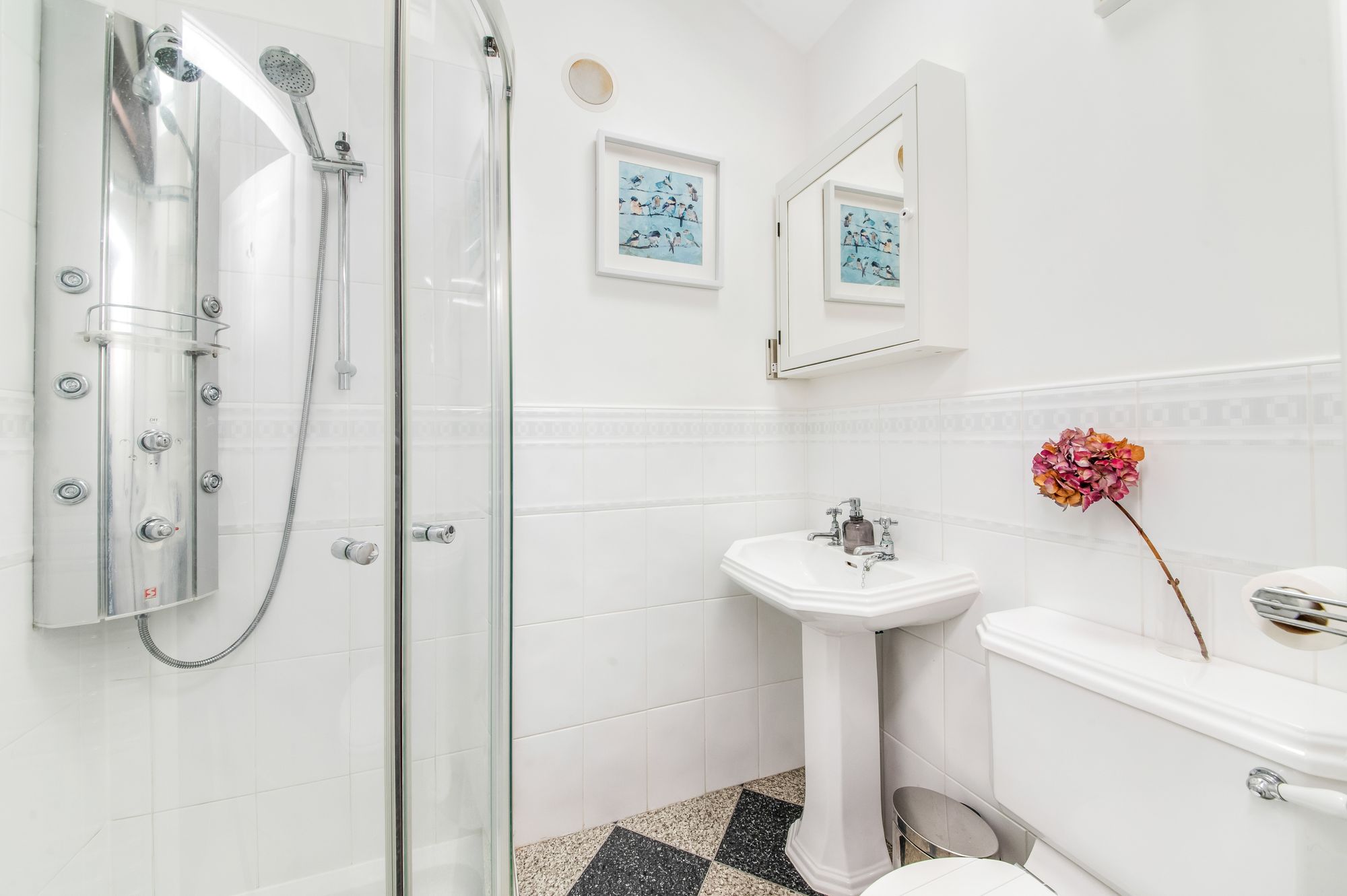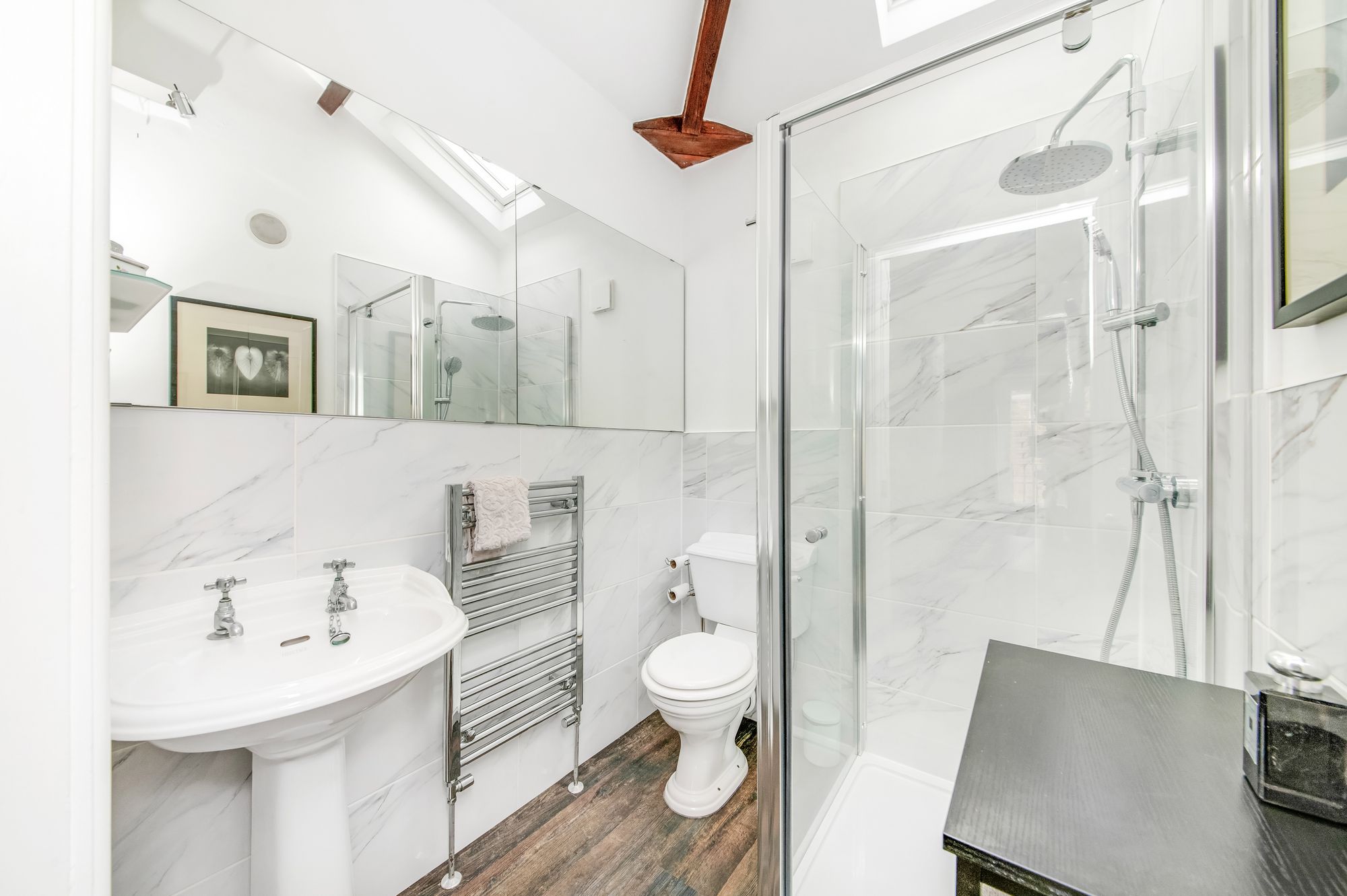The en–suite is fitted with a three-piece suite including low level W.C., pedestal wash hand basin and high-quality sophisticated shower system within the corner shower. There is appropriate tiling, attractive flooring and Velux window.