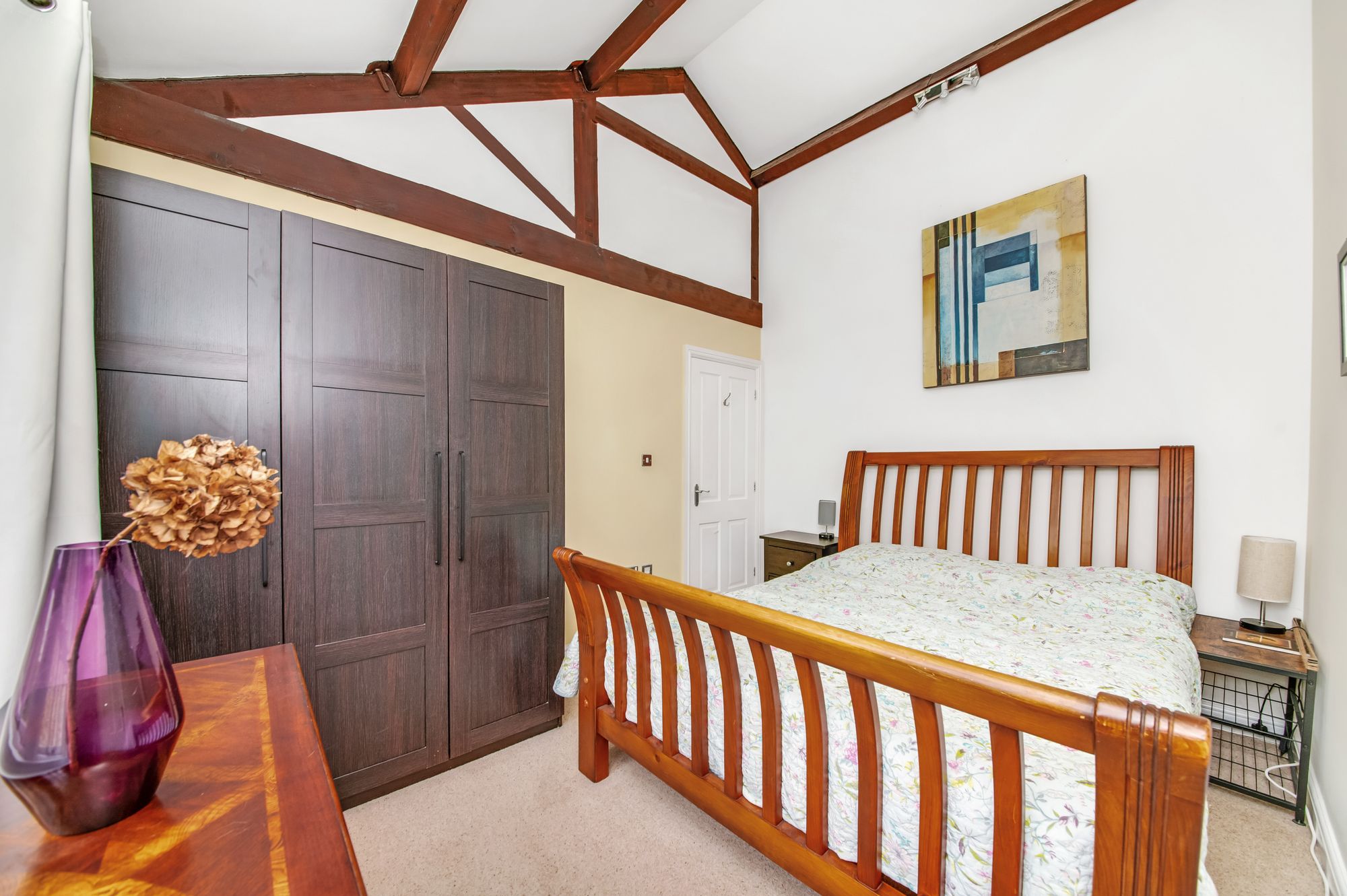 With an outlook to the front, this good sized room has a bank of inbuilt wardrobes and superb beams and timber on display.