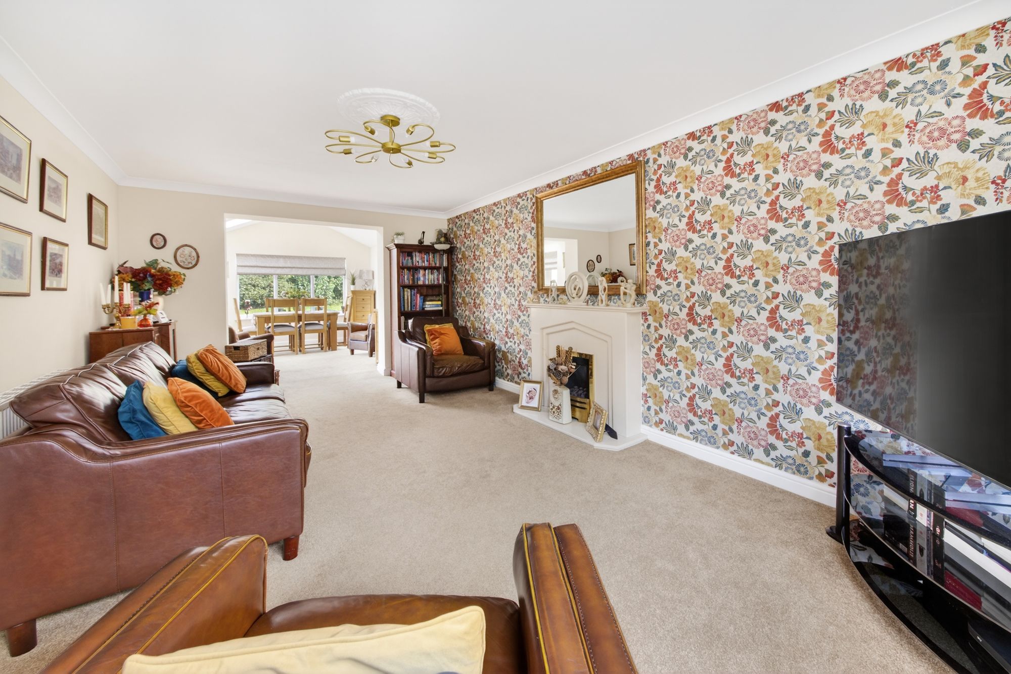 OPEN PLAN LIVING DINING ROOMAn impressively proportioned principal reception room, combining a formal lounge and dining area, forming part of the extension to the home and creating a superb open-plan space, ideal for both entertaining and everyday family living. To one side, the lounge area is arranged around a central focal point in the form of a gas fire with an ornate surround. There is a uPVC double-glazed window to the front elevation, a ceiling light point, and a central heating radiator. The room is tastefully decorated throughout and flows seamlessly via an open aspect into the dining area, enhancing the sense of space and versatility.