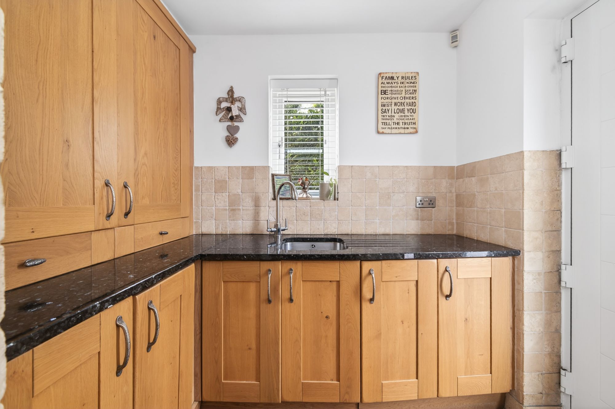 UTILITY ROOMFrom the breakfast kitchen, an opening leads through to the utility room, fitted with a range of matching solid oak shaker-style base and wall units, in keeping with the breakfast kitchen, complemented by granite work surfaces and part-tiled walls. There is a stainless steel sink with chrome mixer tap, plumbing for a washing machine, and a uPVC double-glazed window to the side. A composite and glazed door provides access to the rear garden, and the room benefits from a continuation of the stone-effect Karndean flooring and inset ceiling spotlights.