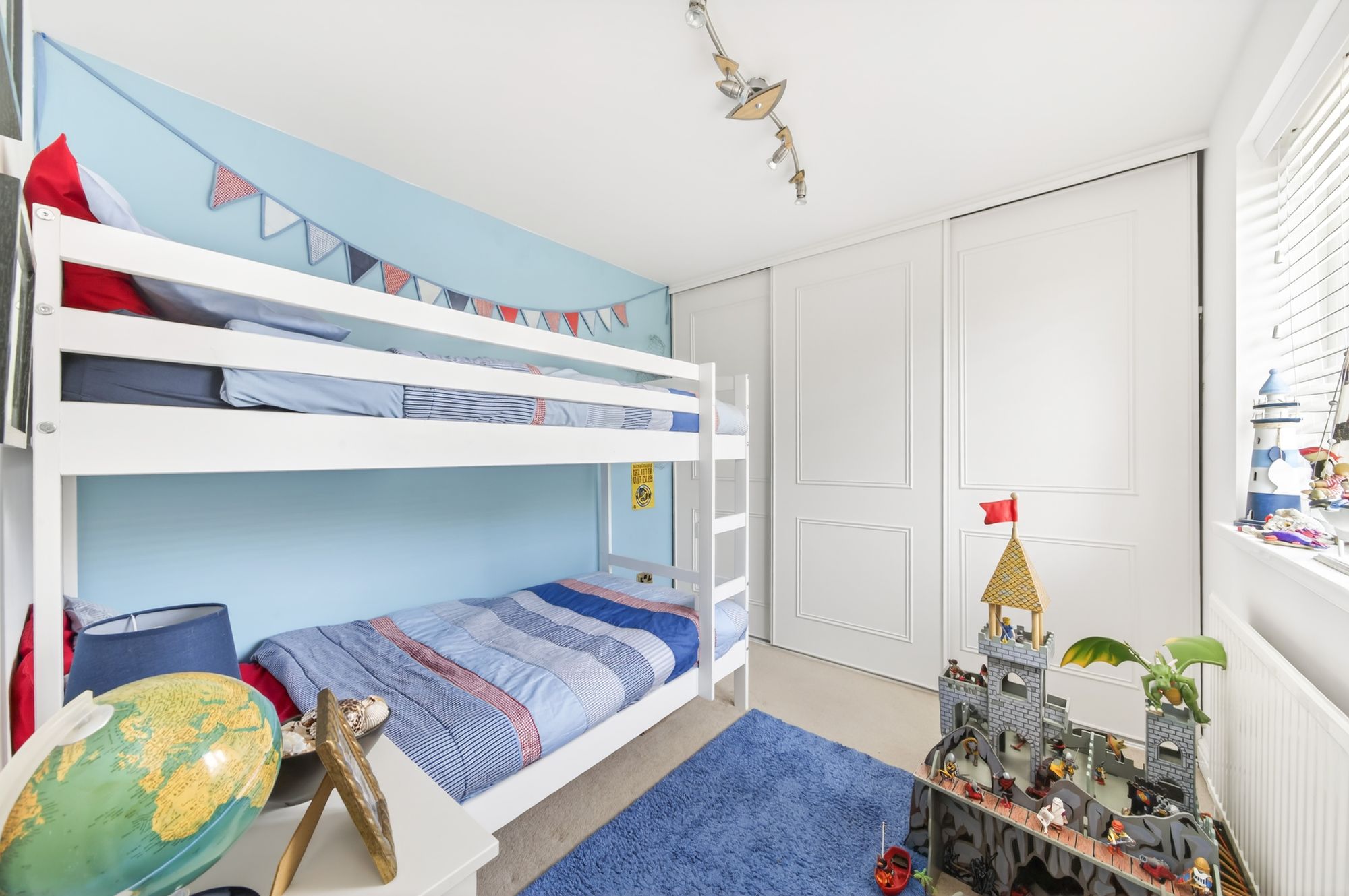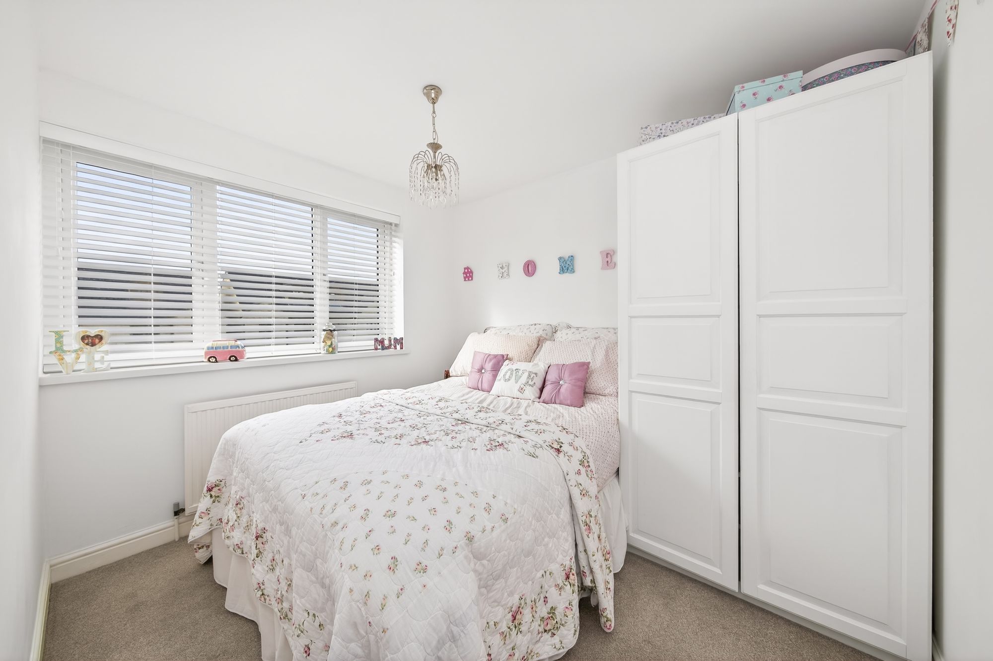 BEDROOM THREEAnother spacious, rear-facing double bedroom, featuring a bank of fitted wardrobes that provide ample storage. The room benefits from a ceiling light, central heating radiator, and a uPVC double-glazed window overlooking the property's garden.