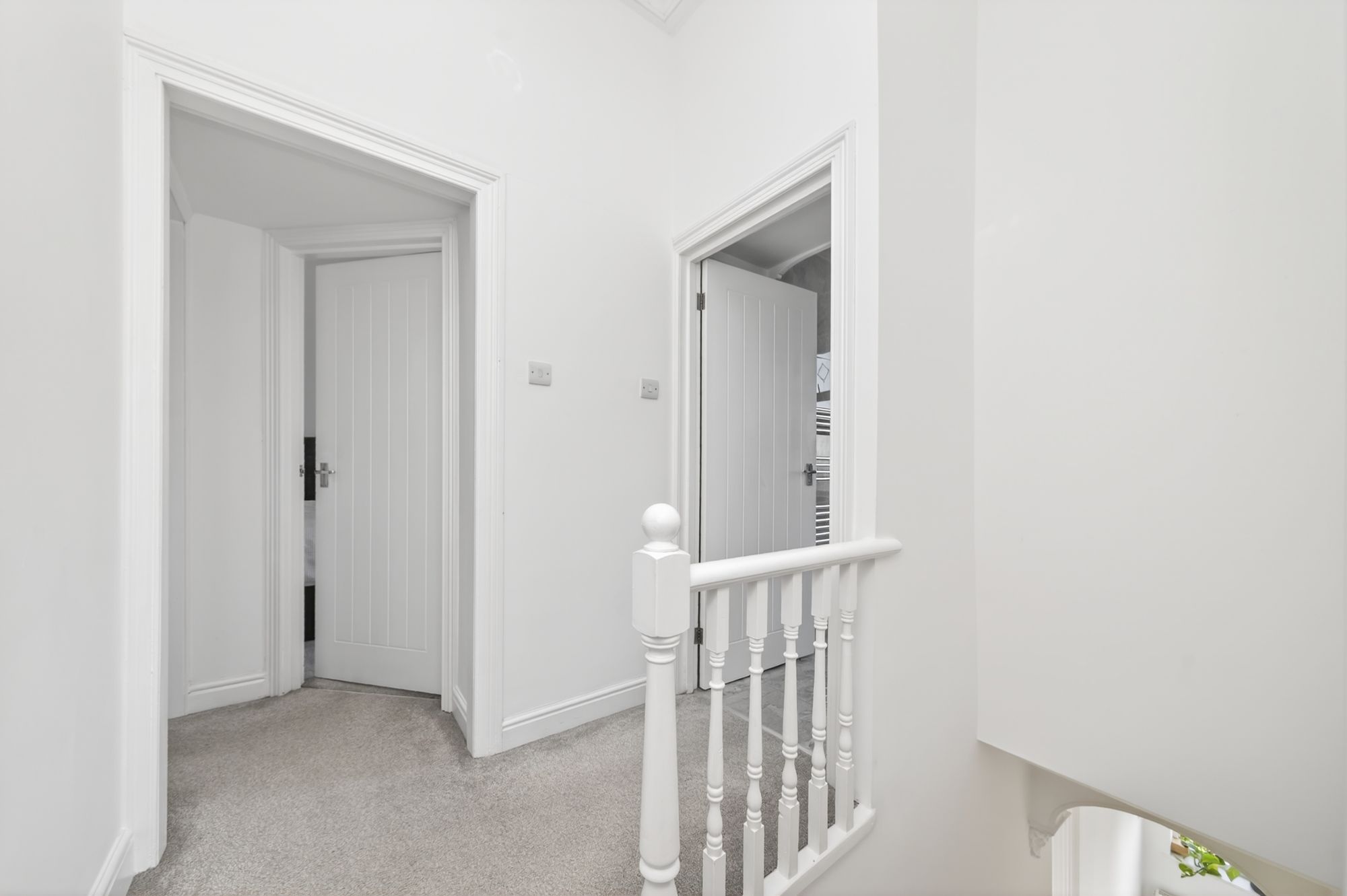 Taking the staircase from the entrance, you reach the first-floor landing, which has doors providing access to three well-proportioned bedrooms and the bathroom. There is inset spotlighting to the ceiling, a wooden banister with spindle balustrade over the stairwell head, and a loft hatch gives access to a useful attic space.