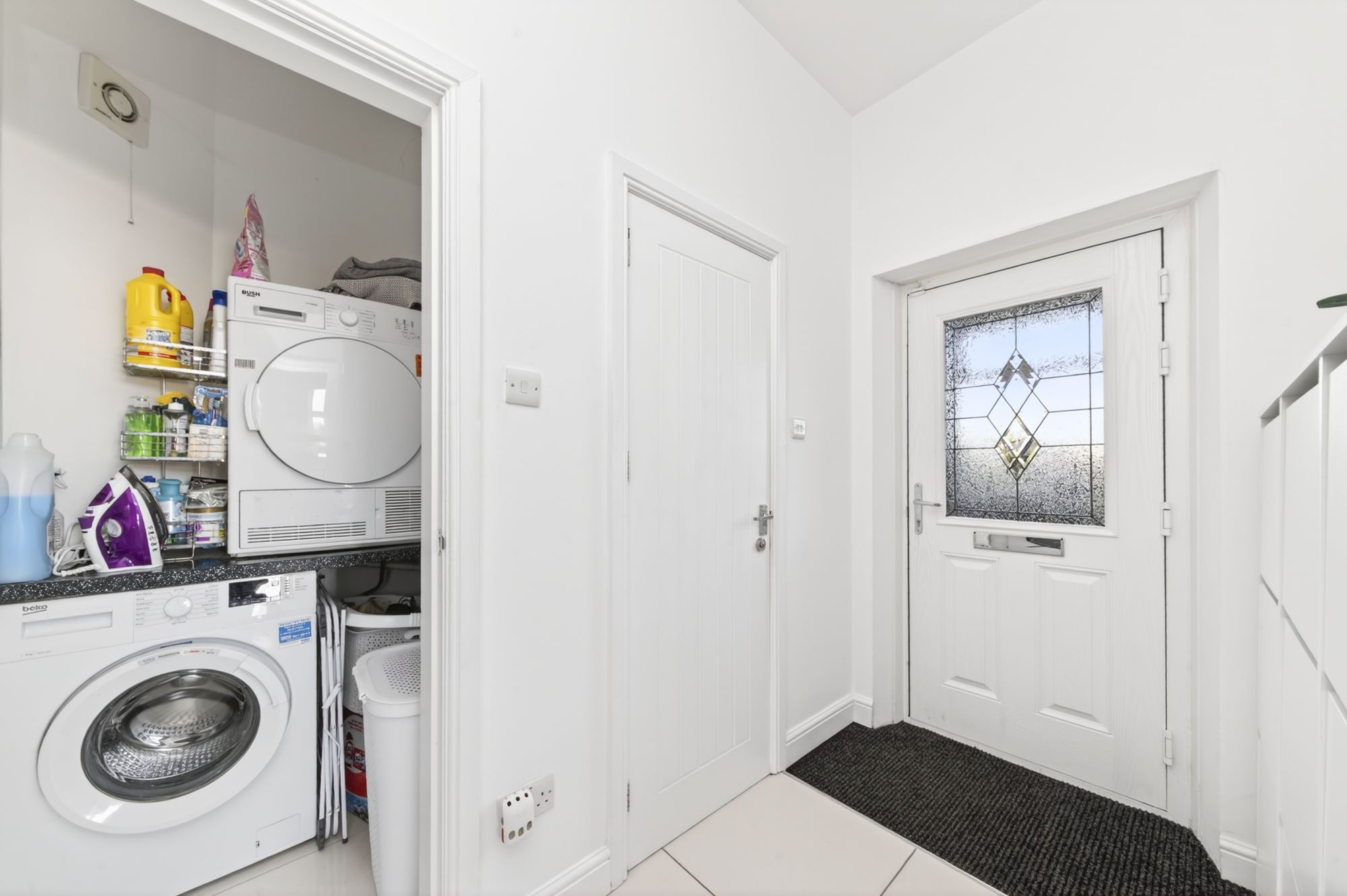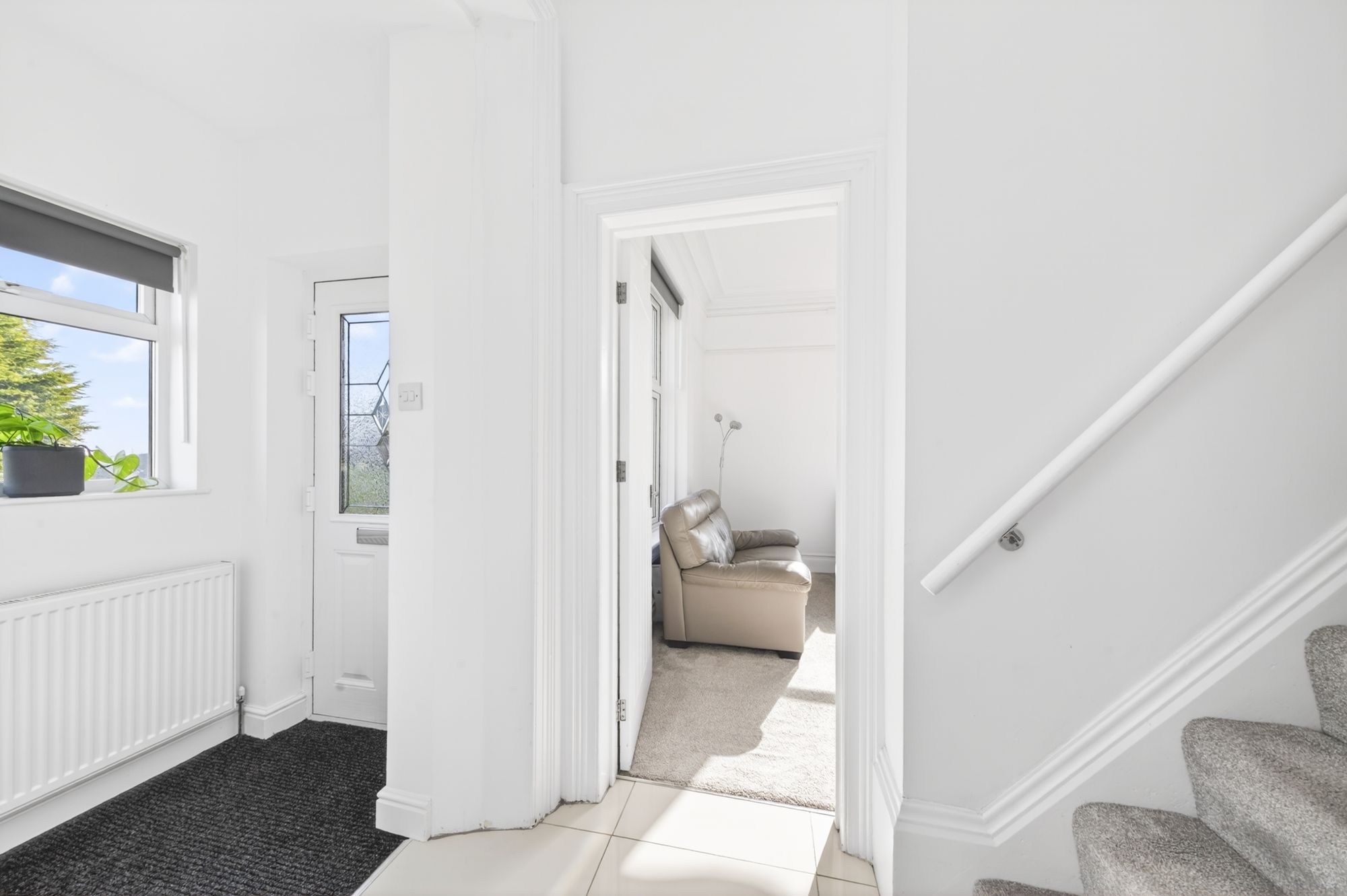 REAR ENTRANCEUtilised as the everyday entrance, there is a double-glazed composite door with obscure glazed inserts and leaded detailing to the side elevation. There is part carpeted and part tiled flooring, inset spotlighting to the ceiling, a radiator and doors provide access to the downstairs w.c. and utility.