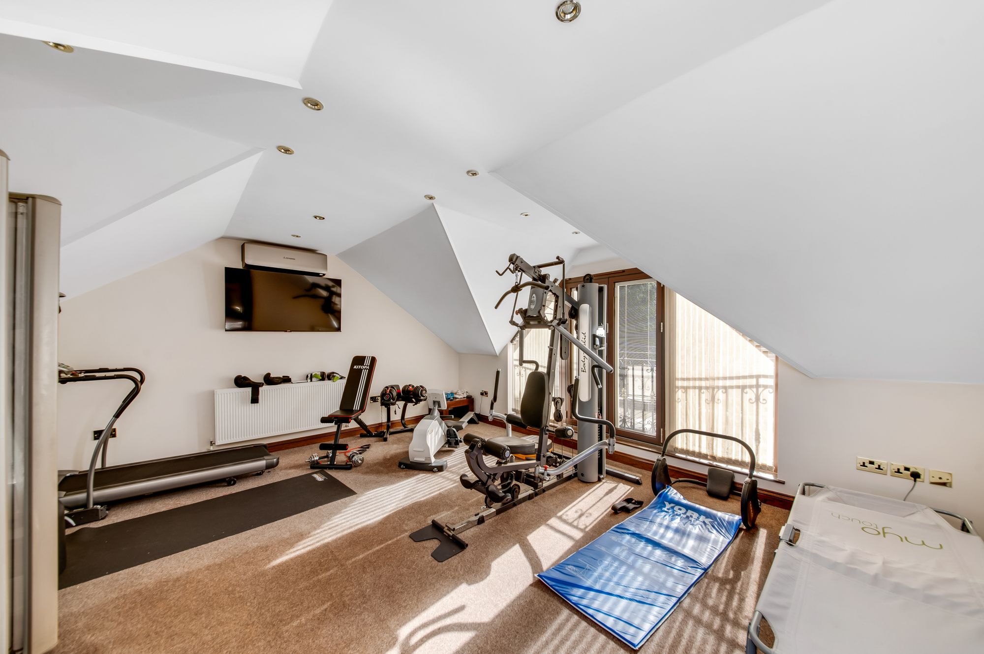 The gymnasium is a multipurpose space which can be utilised for a variety of uses. It enjoys a great deal of natural light with bi-folding doors and adjoining windows to the rear elevation providing direct access to the terrace, and with a Juliette balcony to the front elevation taking full advantage of far-reaching views over rooftops. There is inset spotlighting to the ceilings and three radiators.
