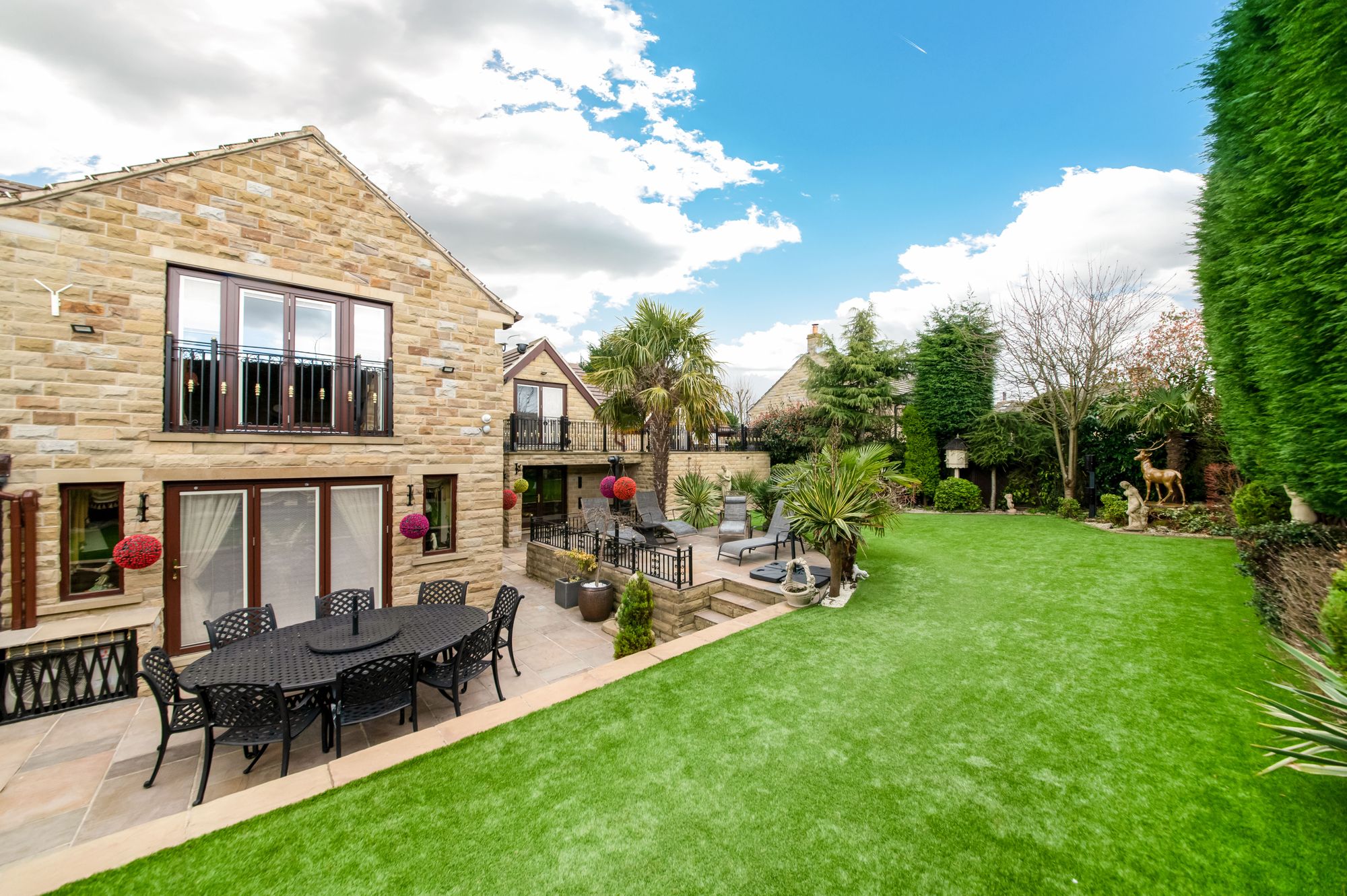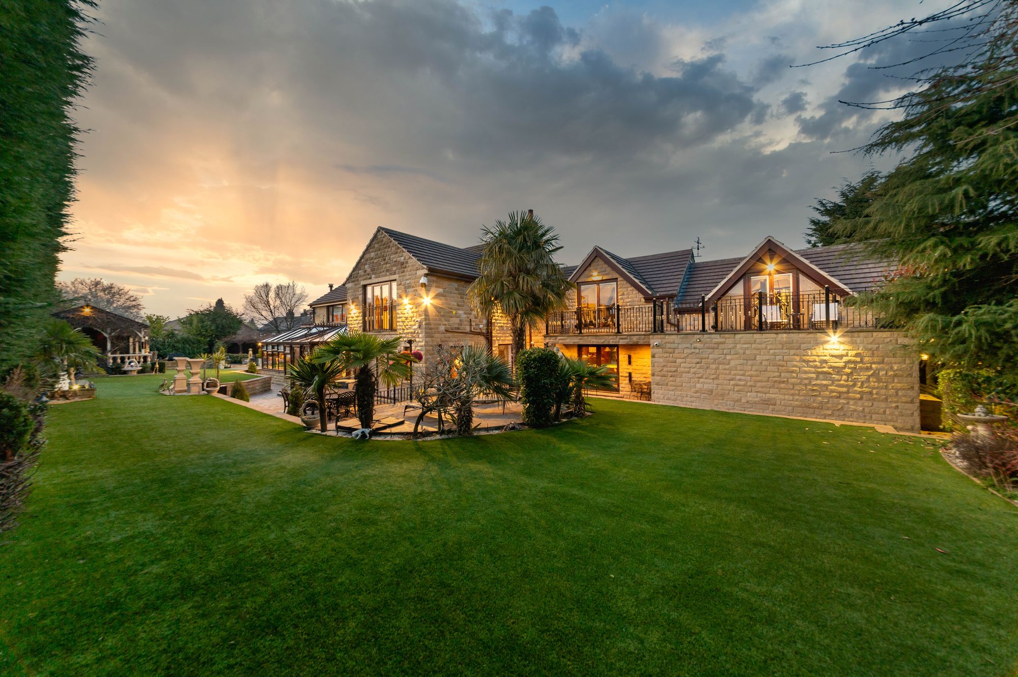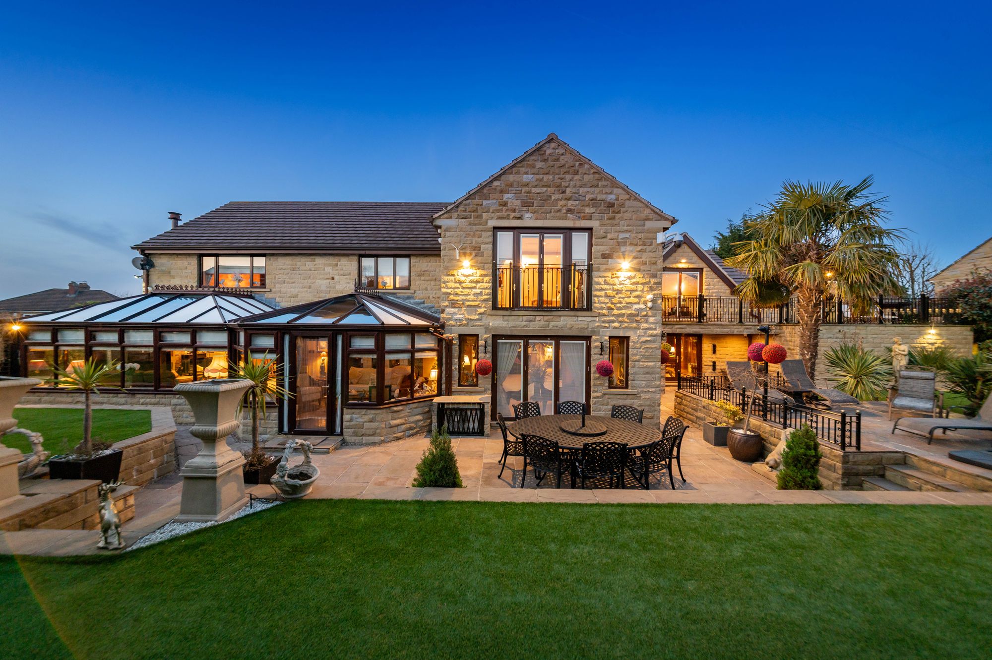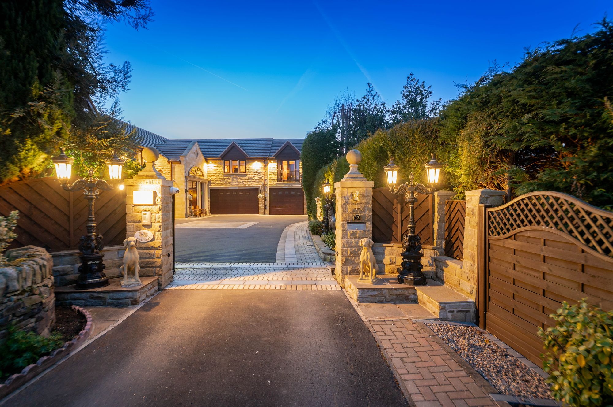 The property briefly comprises of reception hall, downstairs WC, lounge, formal dining room, breakfast kitchen, garden room, utility room, games room and two double garages and a spacious single garage to the ground floor. To the first floor there is a galleried landing, principal bedroom suite with ensuite bathroom, dressing room and walk-in wardrobe. As the floorplan suggests there are four/five versatile bedrooms with four ensuite facilities and a family bathroom. There is a gym and sun terrace, and the west wing of the property could be separated to create annex accommodation. Externally there is a private, gated courtyard providing off street parking for multiple vehicles and with various up lighting and well stocked flower and shrub beds, to the rear is a beautiful enclosed and private garden with artificial lawn with Indian stone flagged patio areas ideal for alfresco dining and BBQ'ing, gazebo, hot tub and garden kitchen. There is an externally accessed gardeners WC and particularly private grounds with mature trees and hedges.