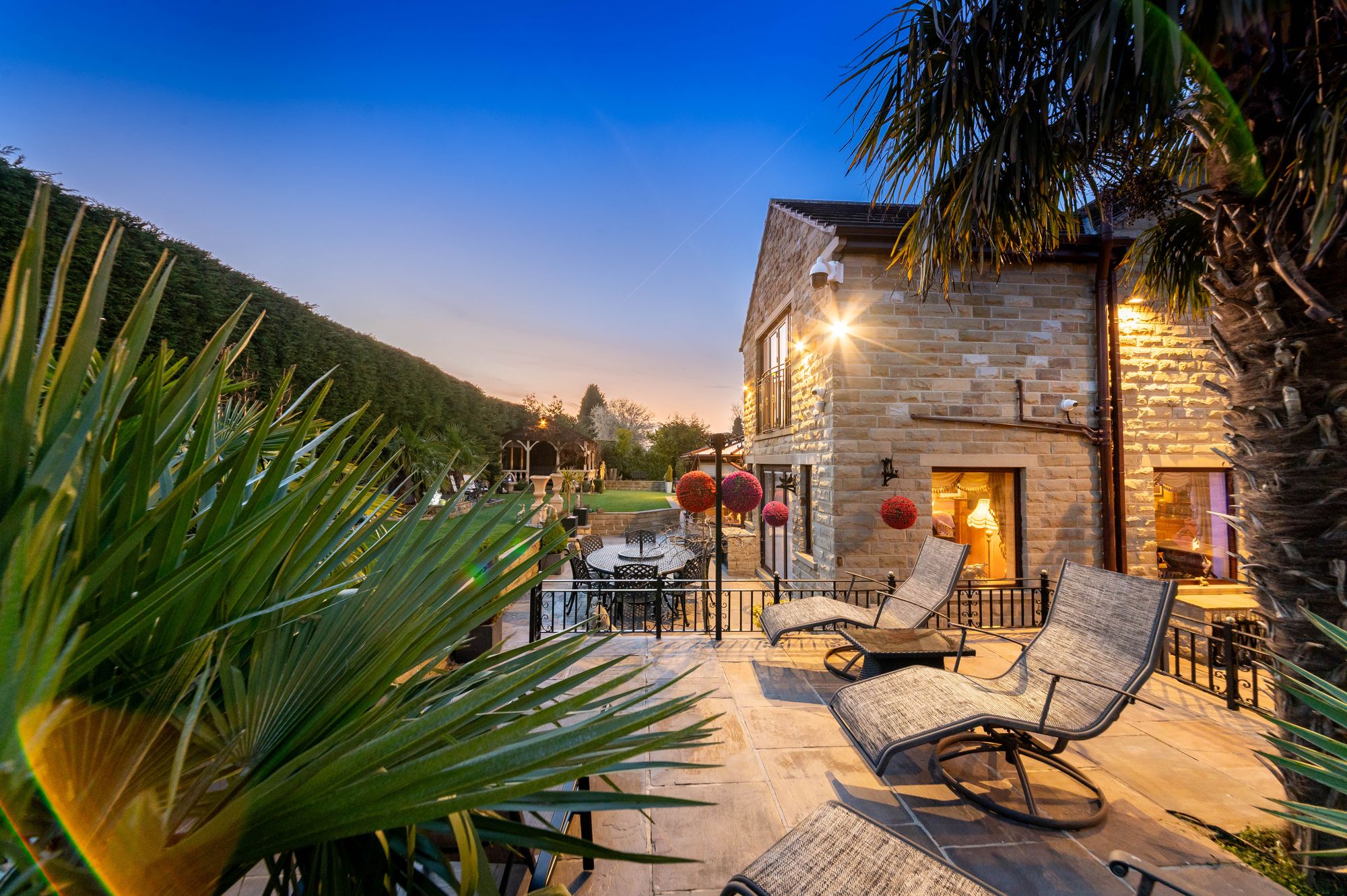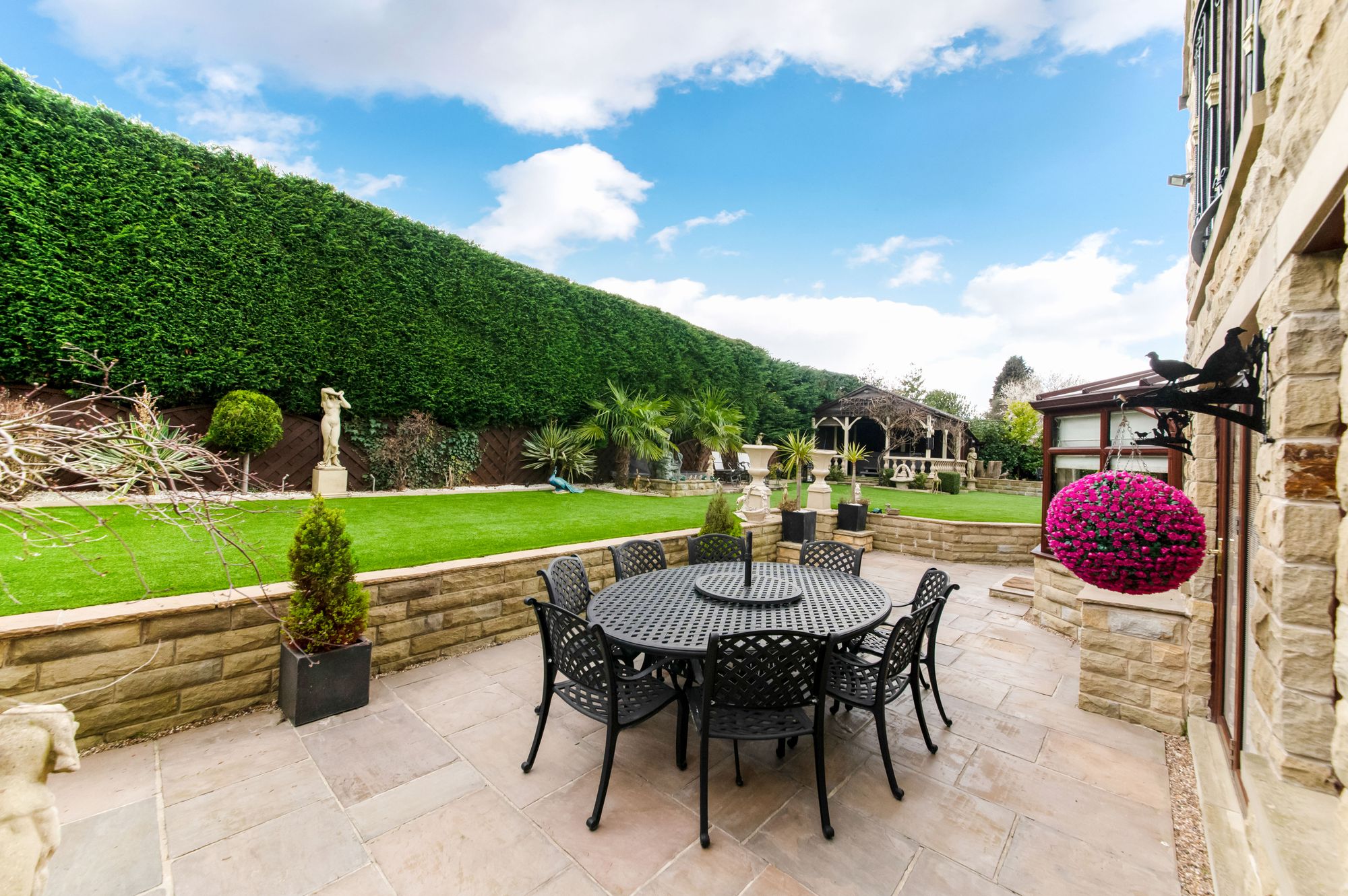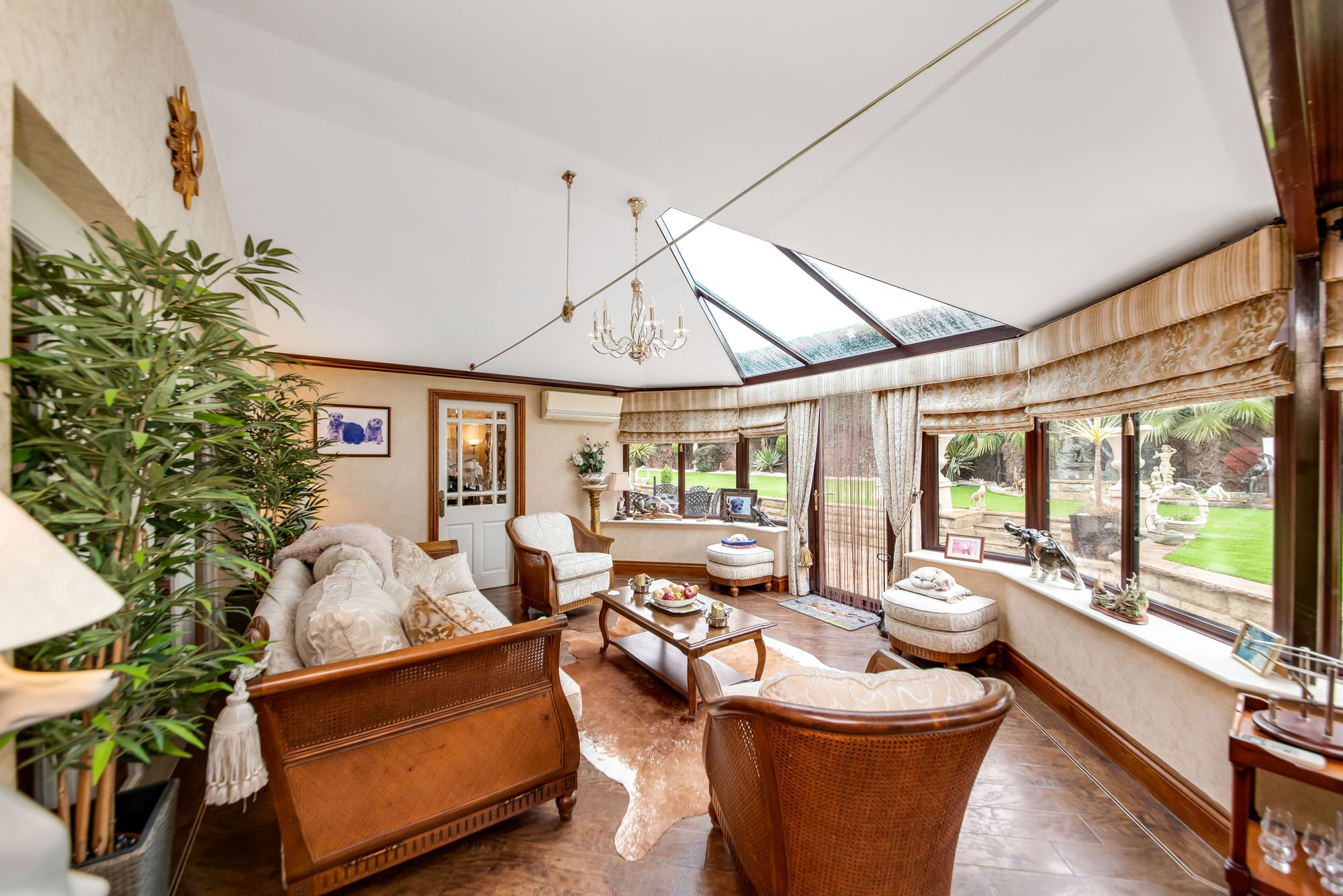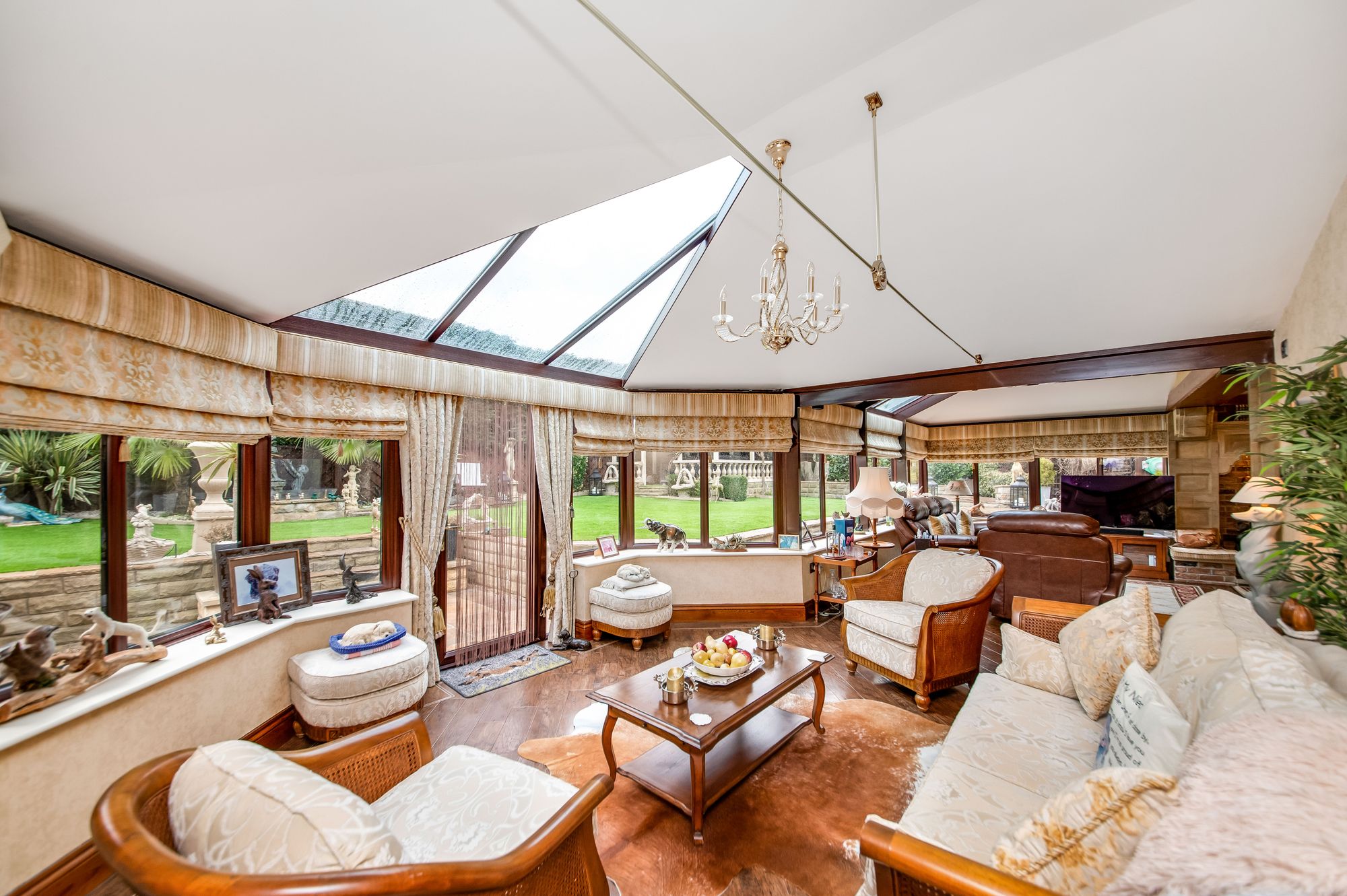 fabulous views across the property’s manicured gardens. The garden room has various inset
