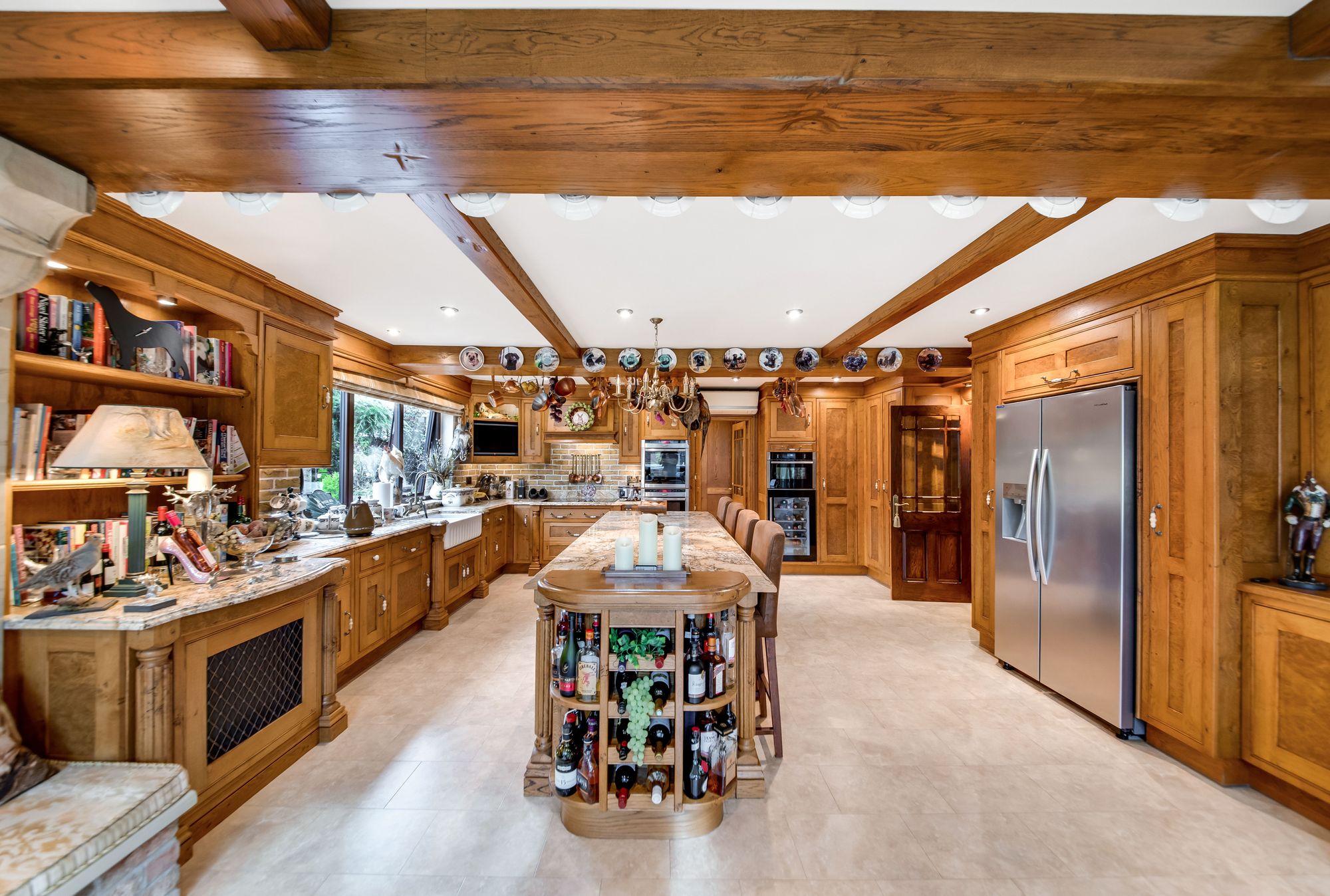 There are space and provisions for an American style fridge and freezer unit and a beautiful bespoke glazed