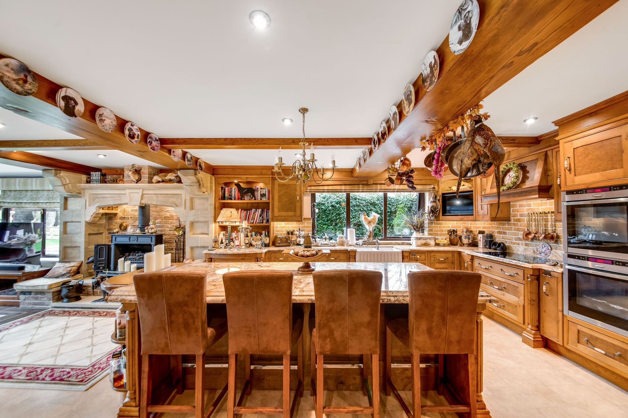 access to the conservatory and the pool room. The focal point of the room is the Inglenook