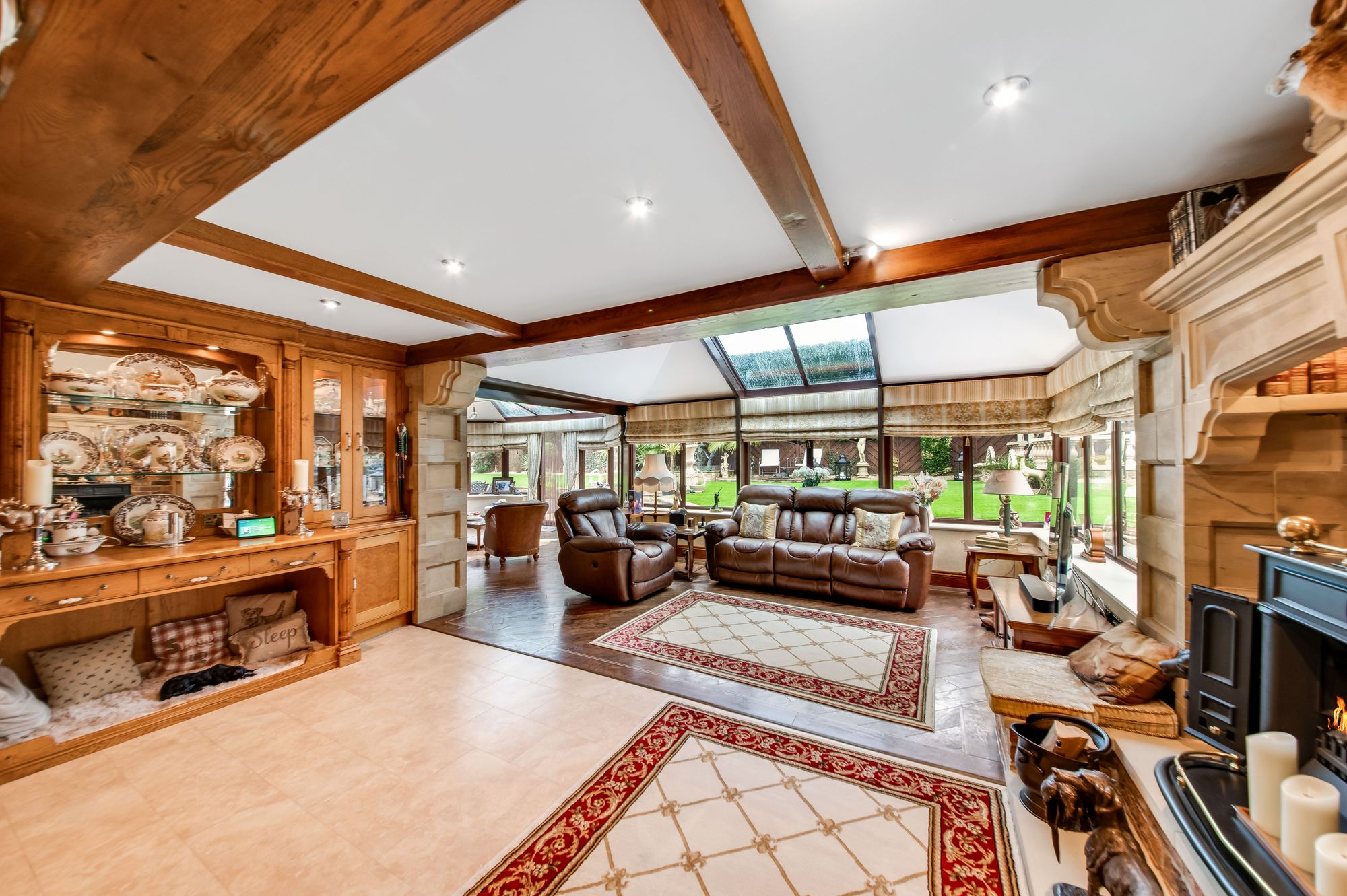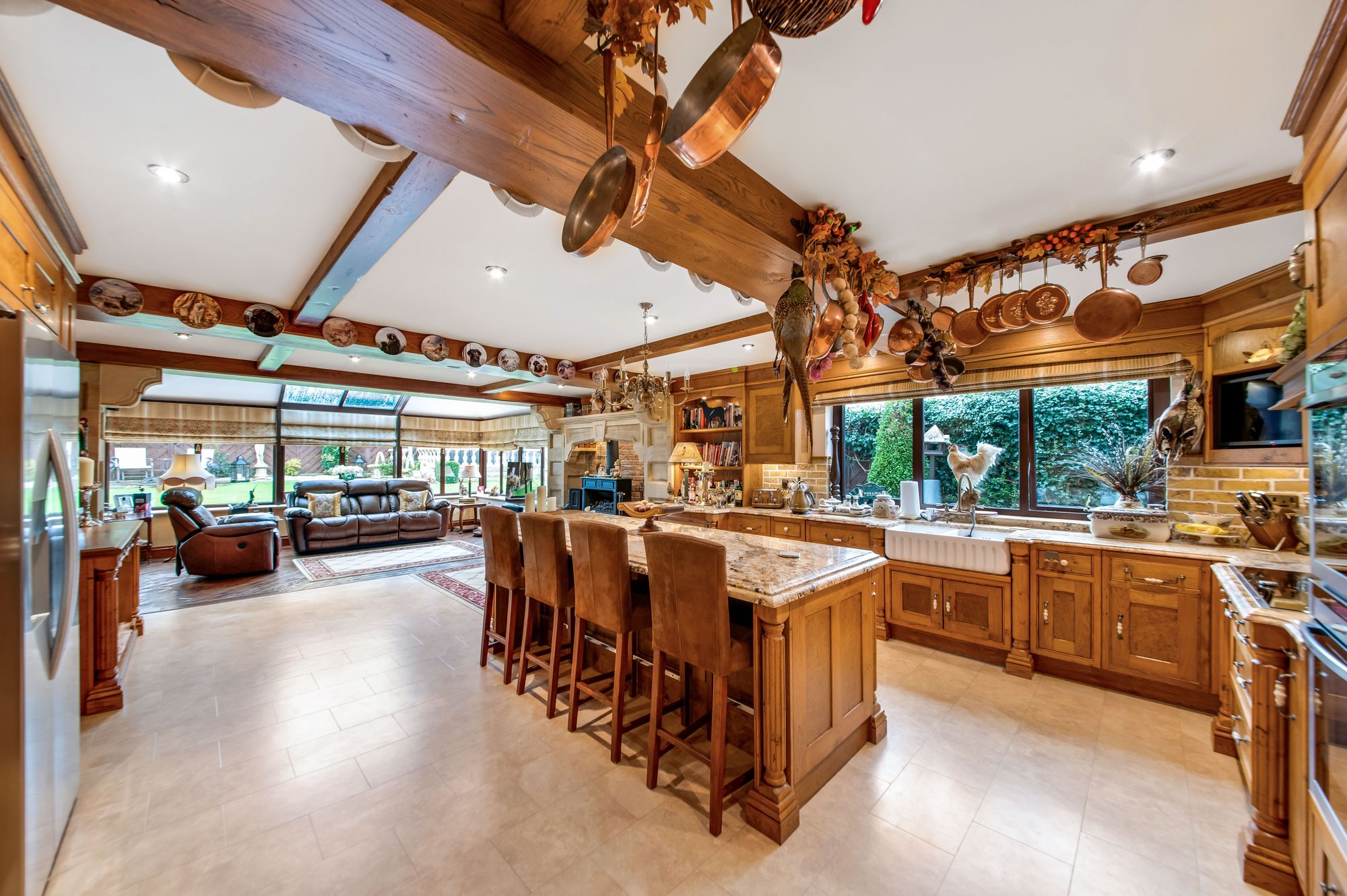 garden room and the kitchen area features decorative beams and batons to the ceilings