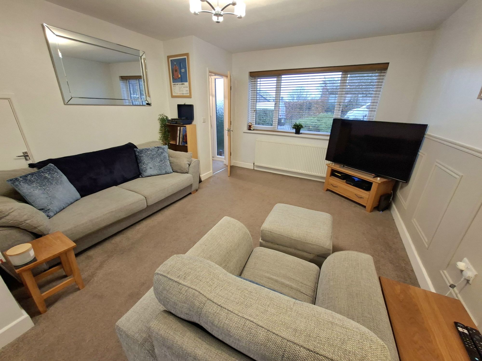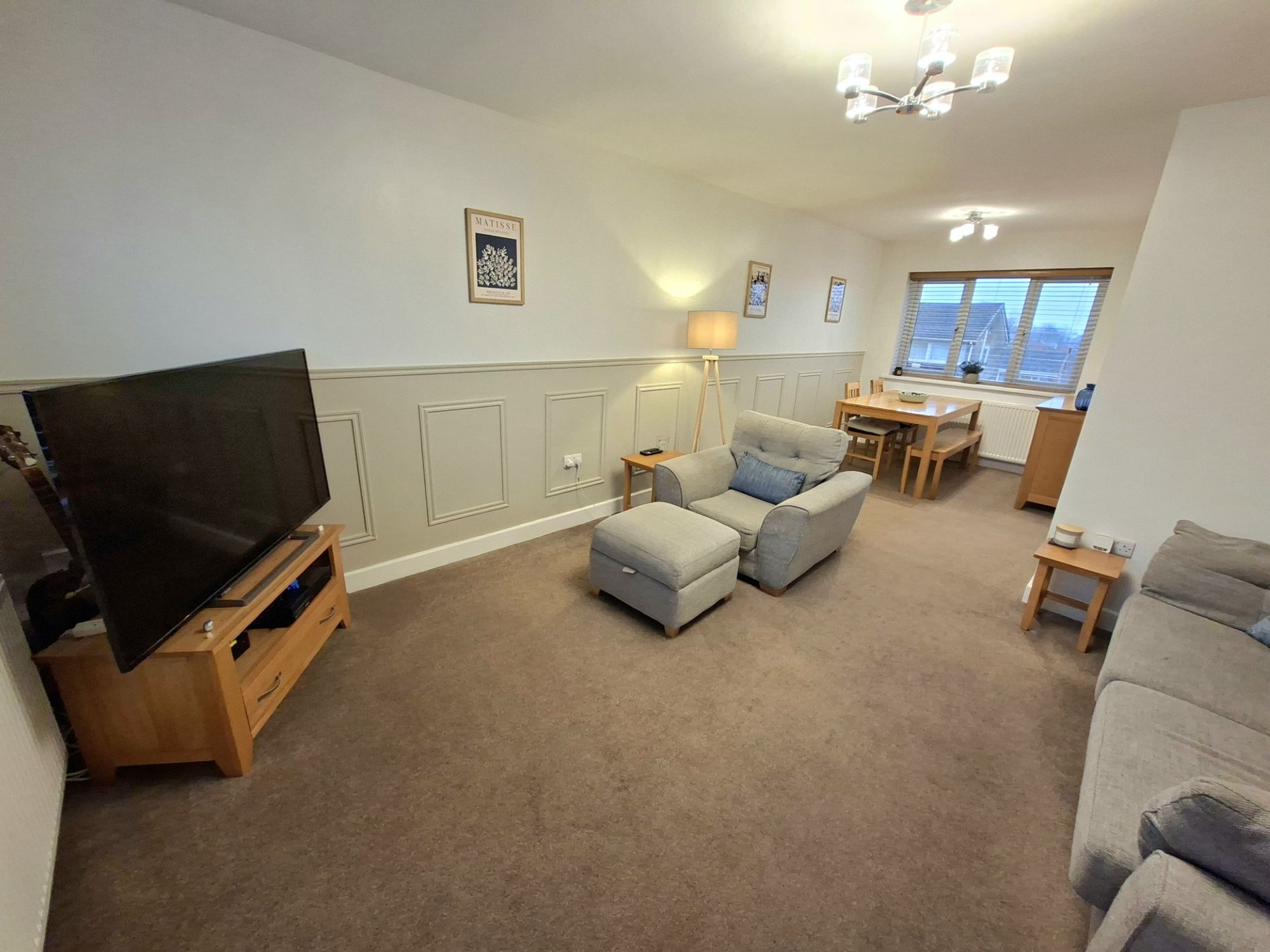 This is a great open plan front to back family space that incorporates both the living room and dining area. The space has great natural light with windows front and rear and has decorative wall panelling. Just great space to relax with family and friends.