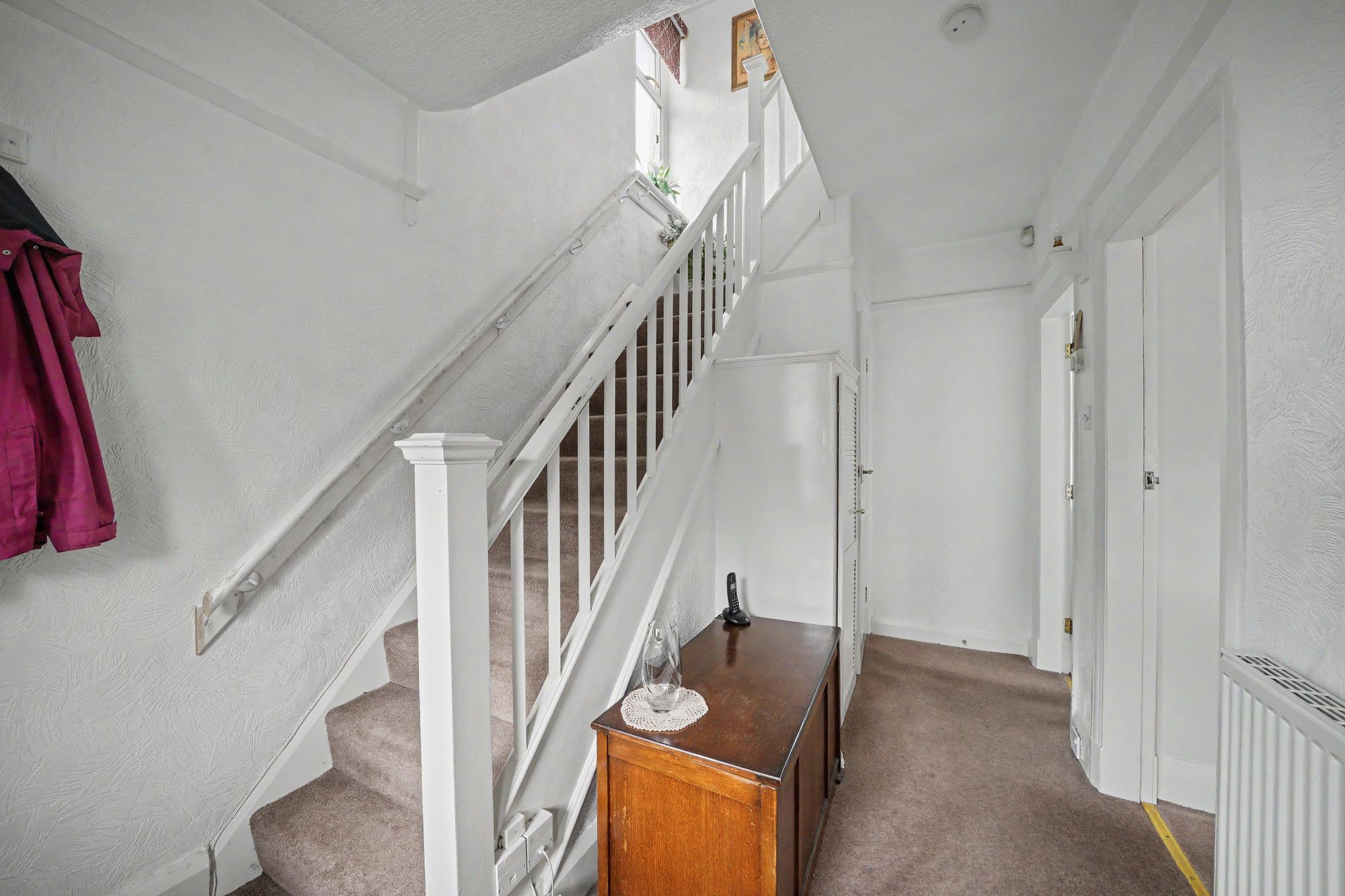 With a uPVC and frosted double glazed door together with uPVC frosted double glazed windows to either side all of which provide the hallway with natural light. There is a ceiling light point, picture rail, central heating radiator, Louvre door storage cupboard and to one side a spindled staircase rises to the first floor. From the hallway access can be gained to the following rooms: -