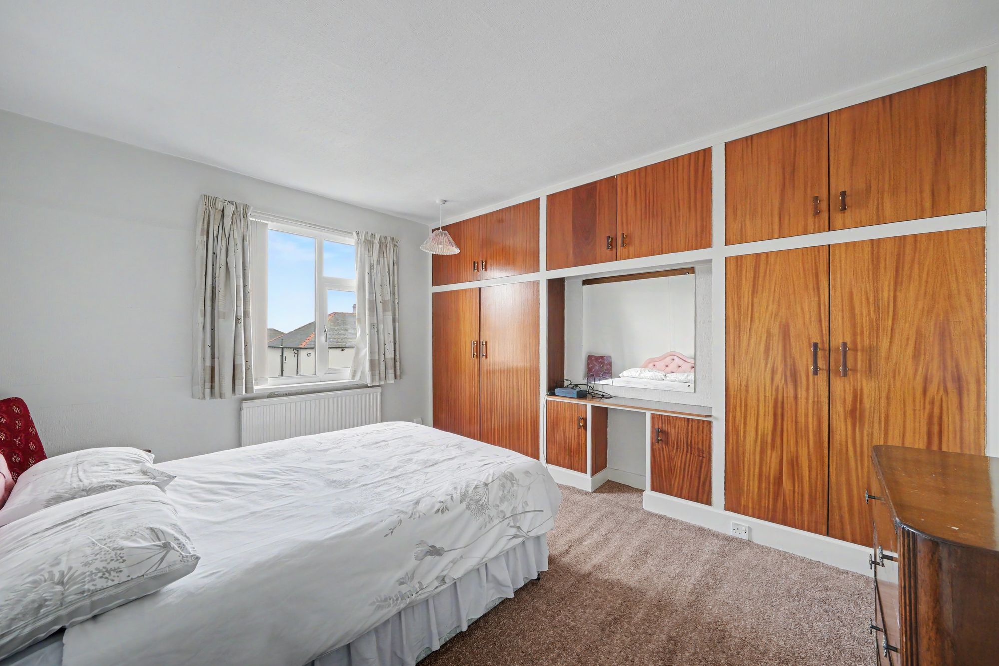 This is situated adjacent to bedroom two and has a uPVC double glazed window looking out over the front garden, there is a ceiling light point, central heating radiator, fitted wardrobe, display shelving and high-level cupboards.