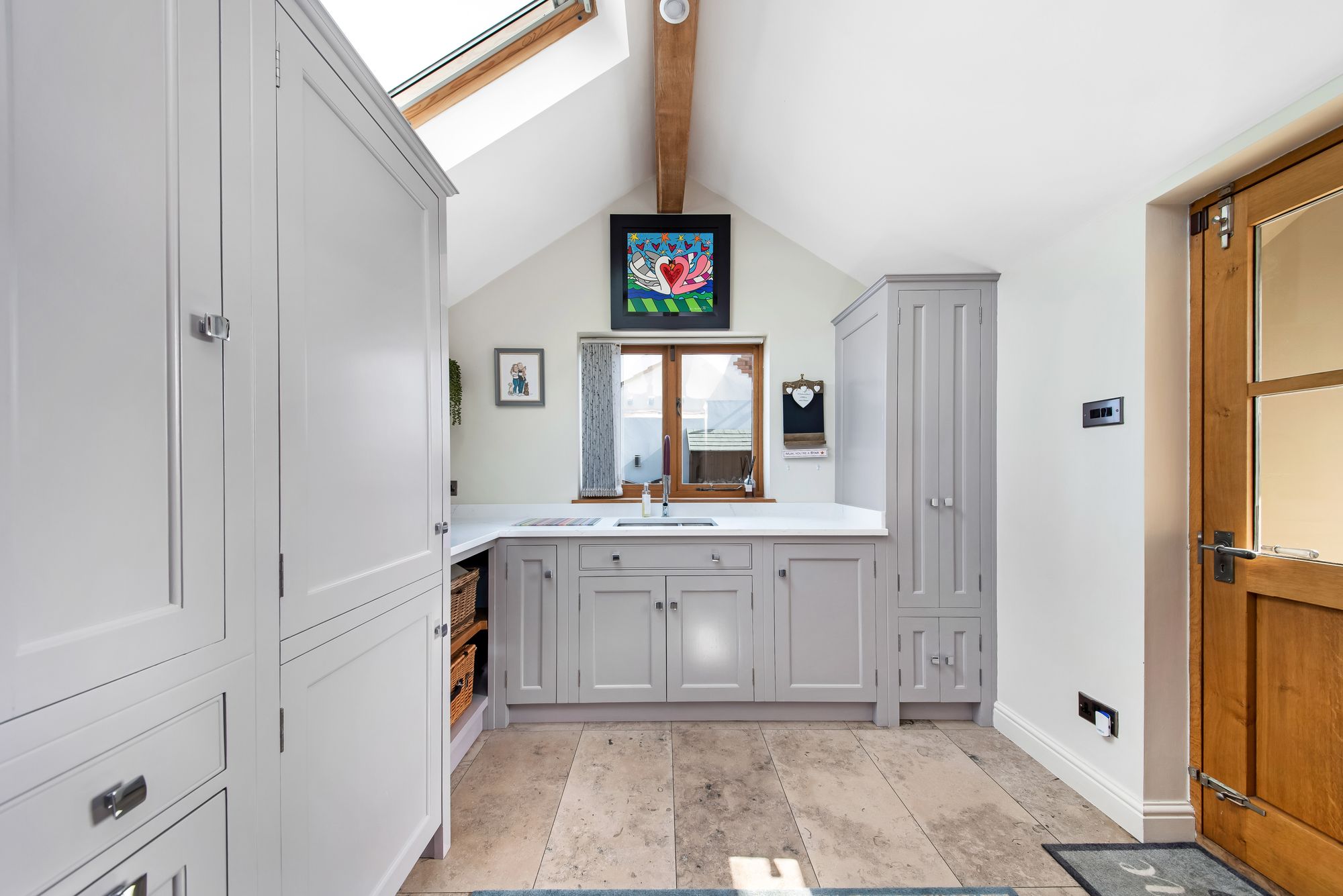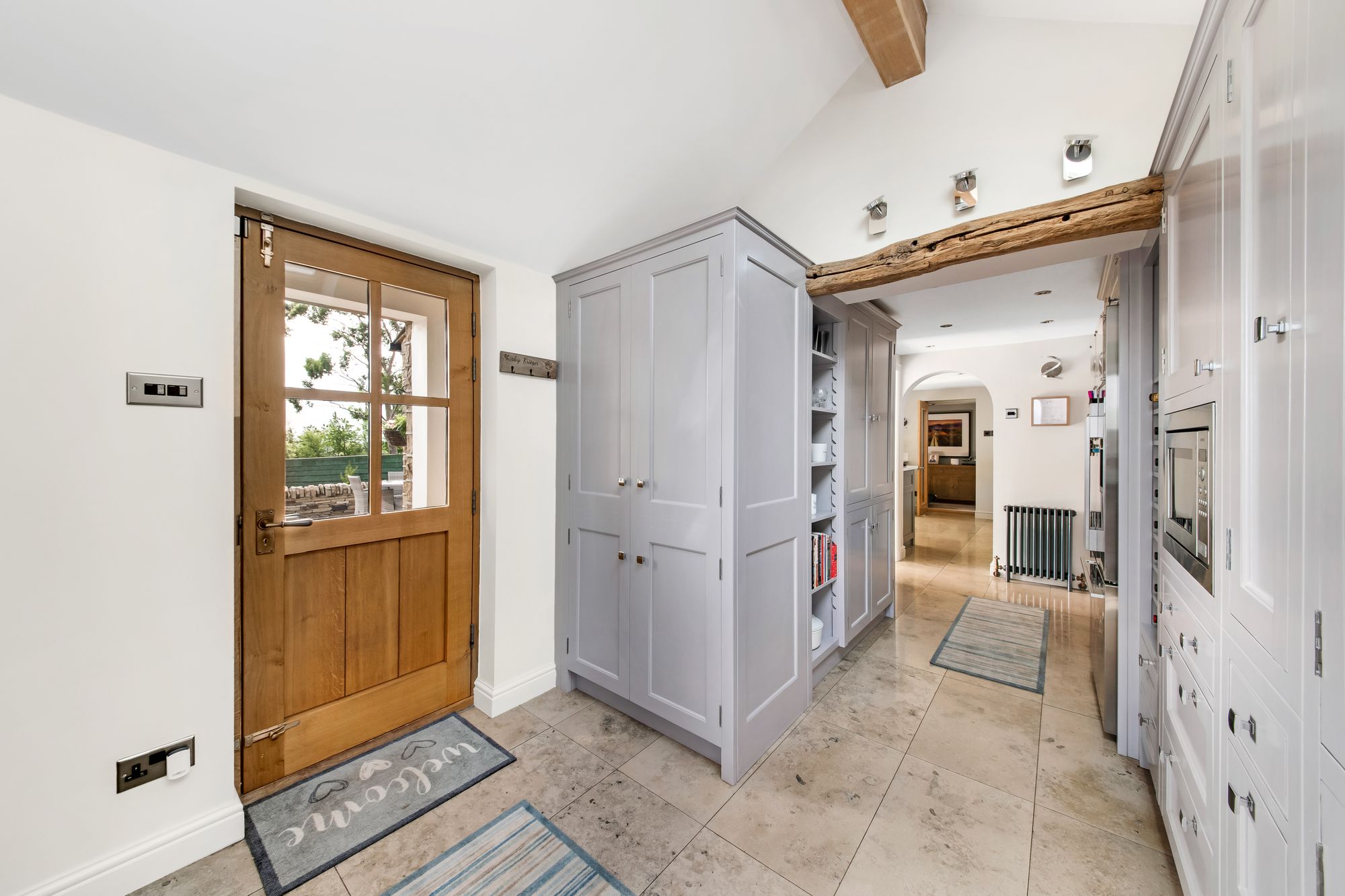 The utility room acts in some respect as a secondary kitchen. As the photographs suggest it is beautifully fitted, has a fabulous range of units, is home for a superb fridge freezer, wine racking, integrated microwave and a period style central heating radiator. The work surfaces, which are of particularly high quality, feature an inset one-and-a-half bowl Franke stainless steel sink unit with mixer tap over. There is also an external/everyday timber and glazed entrance door and the utility room is fitted with a superb cloakroom/boots and shoes storage. It also has concealed plumbing for an automatic washing machine.