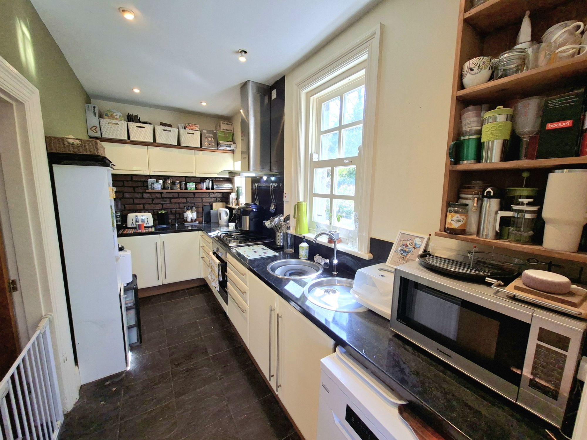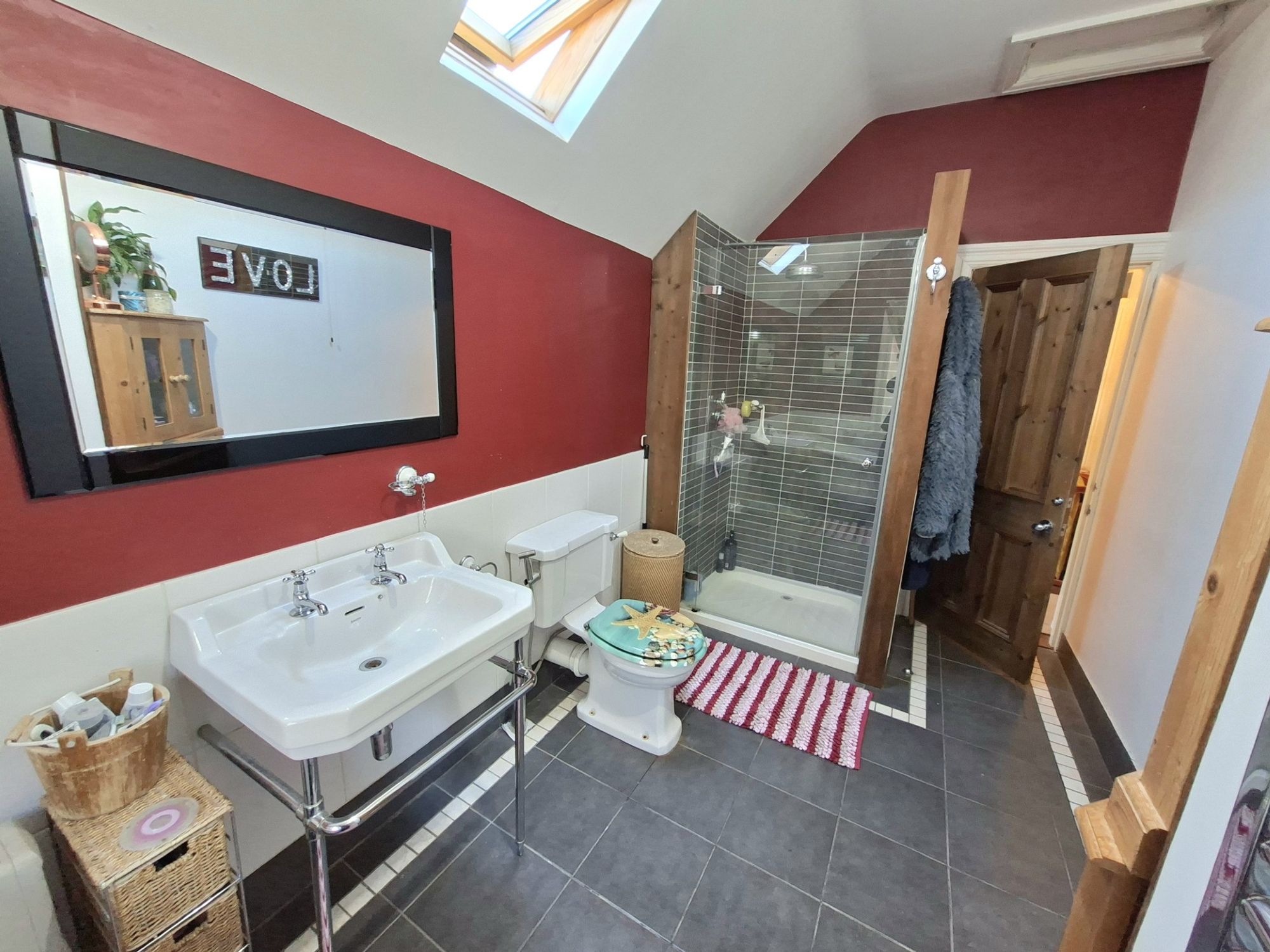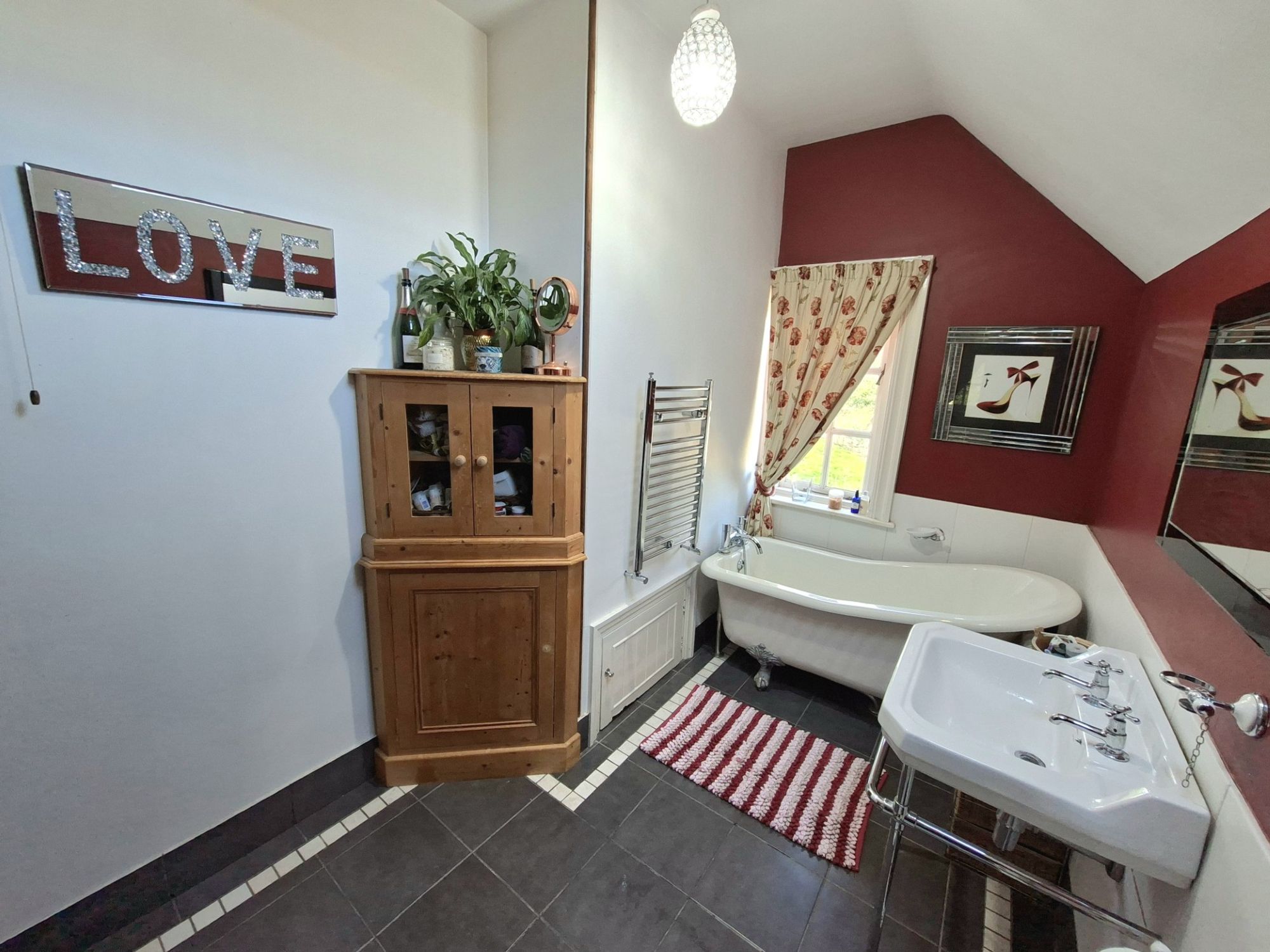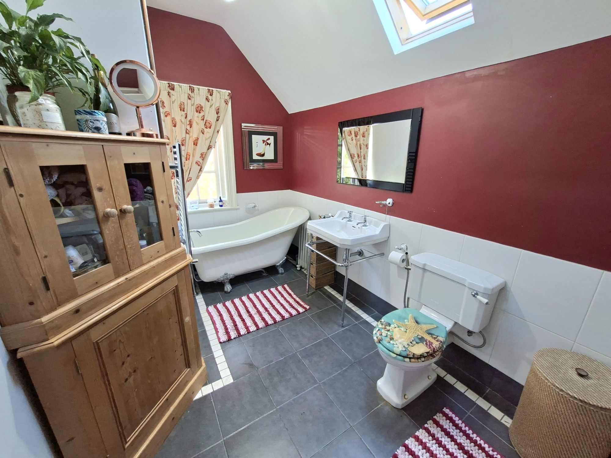 FAMILY BATHROOMThe family bathroom is spacious with separate roll-top bath and separate shower, ideal for modern family living. As well as the window overlooking the side garden there and a further Velux roof windows giving great natural light.
