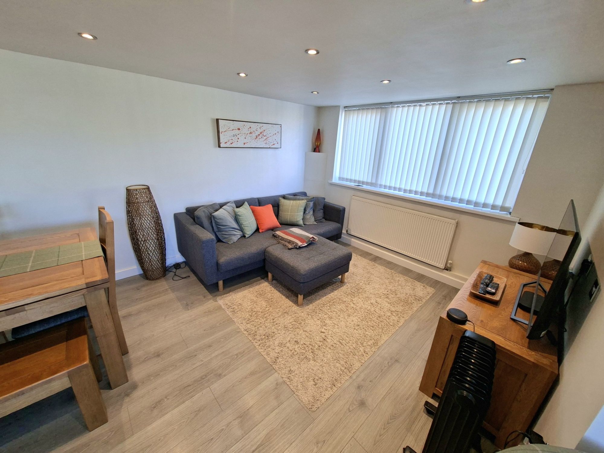 A beautifully decorated and relaxing living room which is a great size and has very good natural light.
