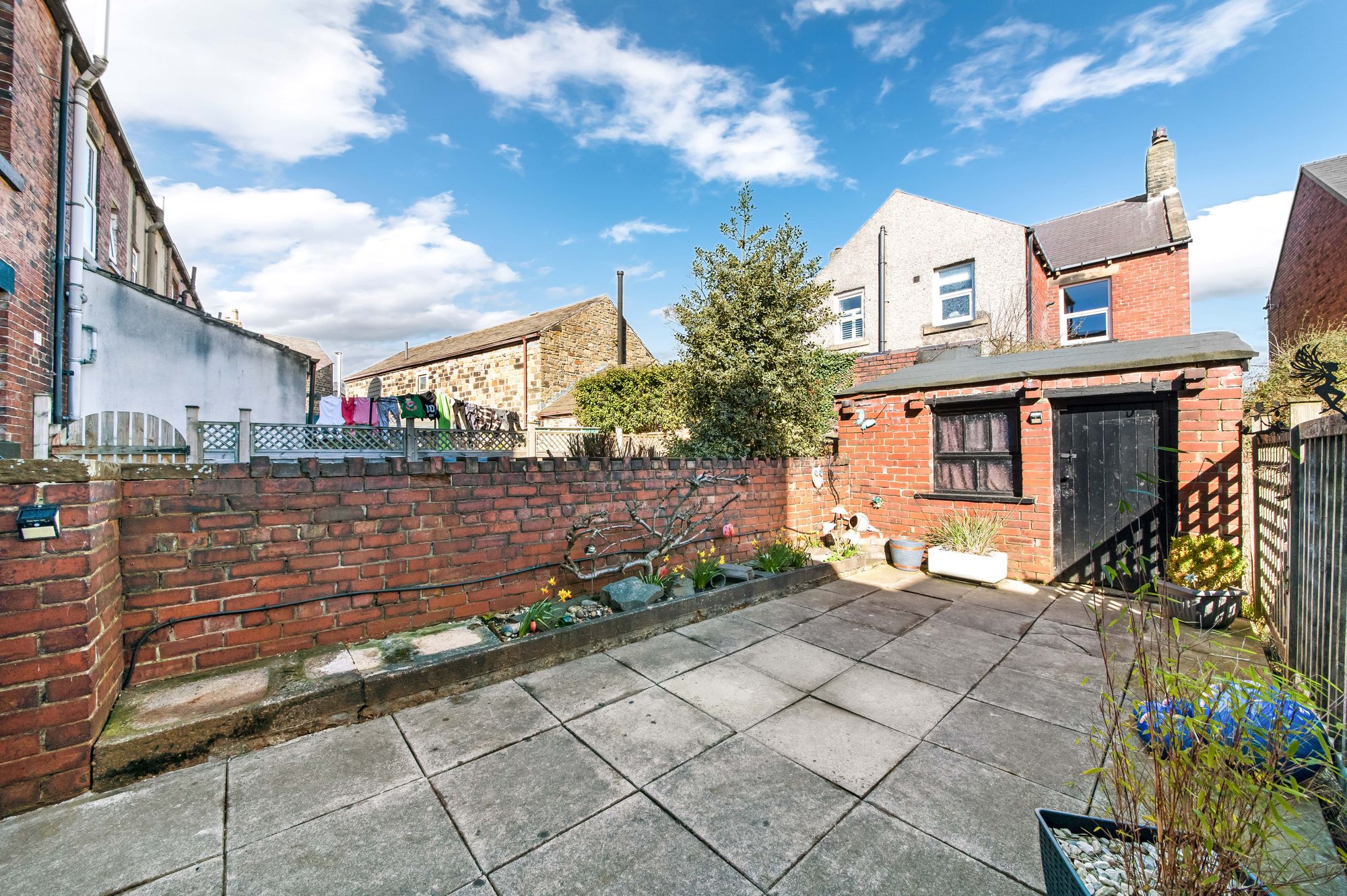 OUTSIDETo the front, there is a low-maintenance gravelled garden enclosed with stone walling. At the rear, the property enjoys a low-maintenance flagged garden with raised flower beds to one side, leading to a spacious brick-built outbuilding providing excellent storage and benefiting from a power supply. A ginnel gives access to the side and front of the property. Please note, the neighbouring property holds a right of access across the rear of the home.