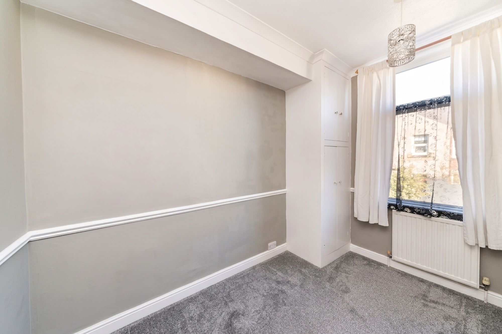 BEDROOM THREEA rear facing bedroom, with ceiling light, central heating radiator, built-in cupboard and double glazed window to rear.