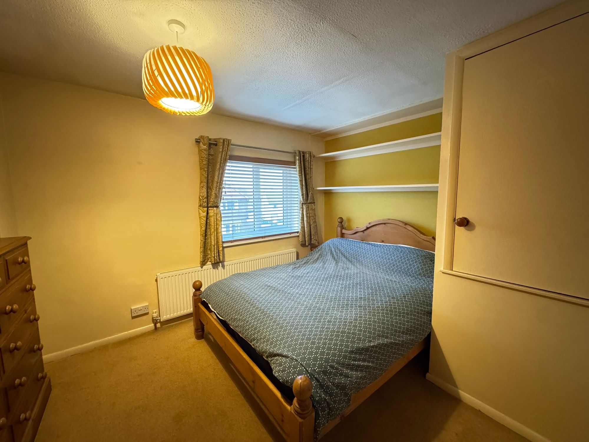 BEDROOMA spacious double bedroom positioned to the rear of the home, with a uPVC double-glazed window overlooking the garden and neighbouring properties. The room features a ceiling light, central heating radiator, and a built-in cupboard housing the boiler, which we are informed has been recently installed and remains under warranty.