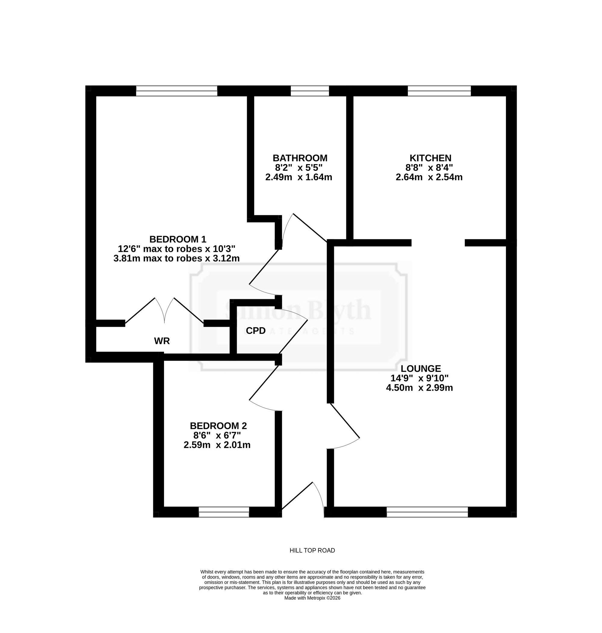 8' 9" x 12' 6" (2.67m x 3.81m)