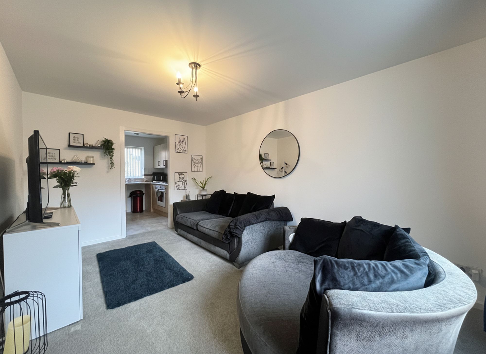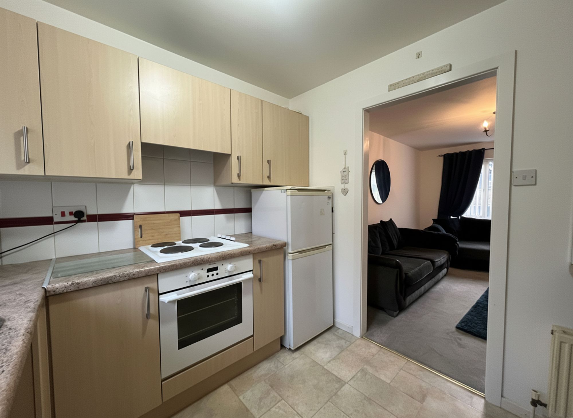 The lounge offers ample space to be utilised as an open-plan living and dining room. It features a bank of double-glazed windows to the front elevation with open-aspect views onto the courtyard, which also provide the room with a great deal of natural light. There is a central ceiling light point and a radiator. A doorway then seamlessly leads into the kitchen.